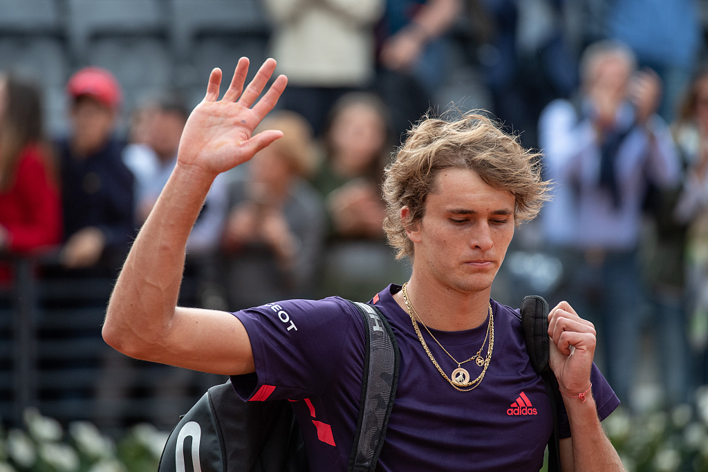 Alexander Zverev of Germany waves goodbye to fans after he lost to Matteo Berrettini of Italy during the Italian Open at Foro Italico in Roma, Italy, May 14, 2019. /VCG Photo