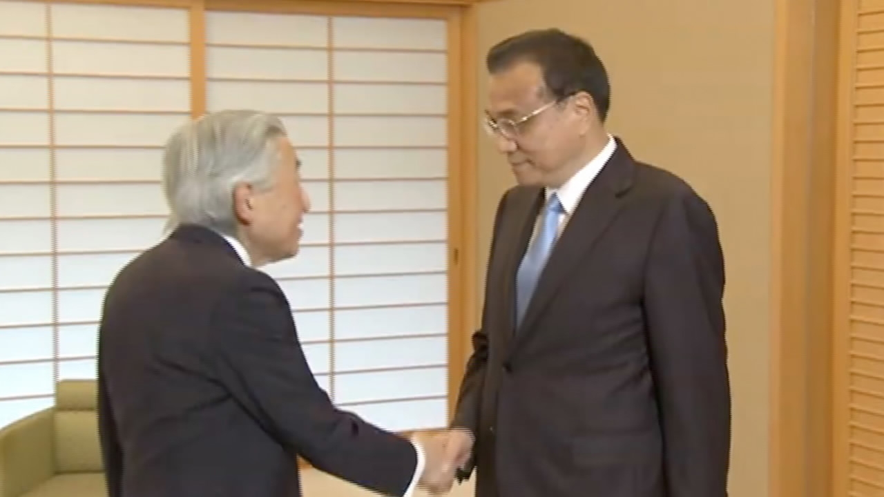 Chinese Premier Li Keqiang met Japan's Emperor Akihito at the Imperial Palace in Tokyo on Thursday. Li said that new progress and lasting, stable development should be sought in the relationship between the two nations as it gets back on track. This is the best way to commemorate the signing of the China-Japan Treaty of Peace and Friendship, Li told a reception marking the 40th anniversary of the treaty in Tokyo.