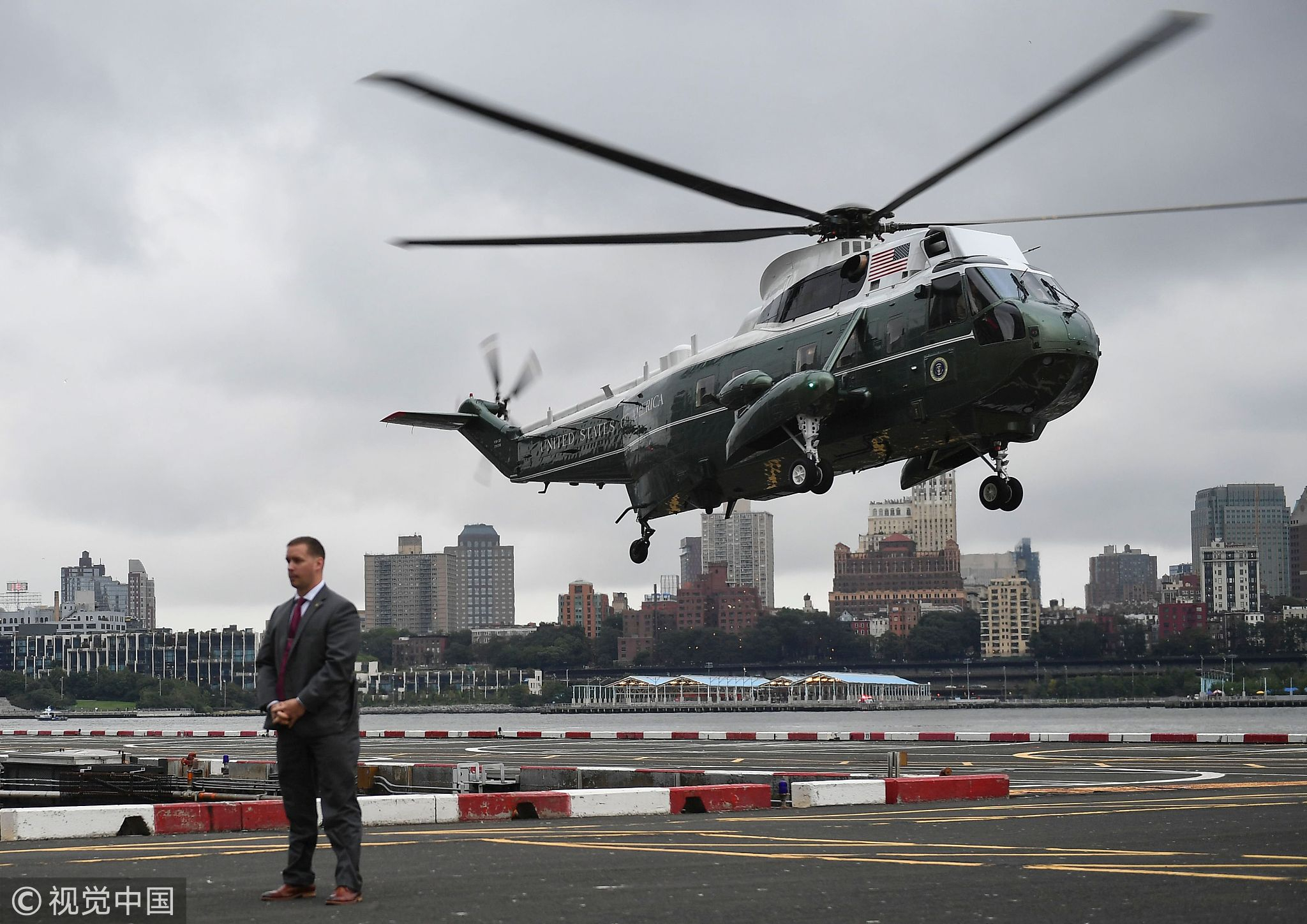 Marine One, carrying US President Donald Trump, lands in lower Manhattan in New York on Sept. 23, 2018. /VCG Photo