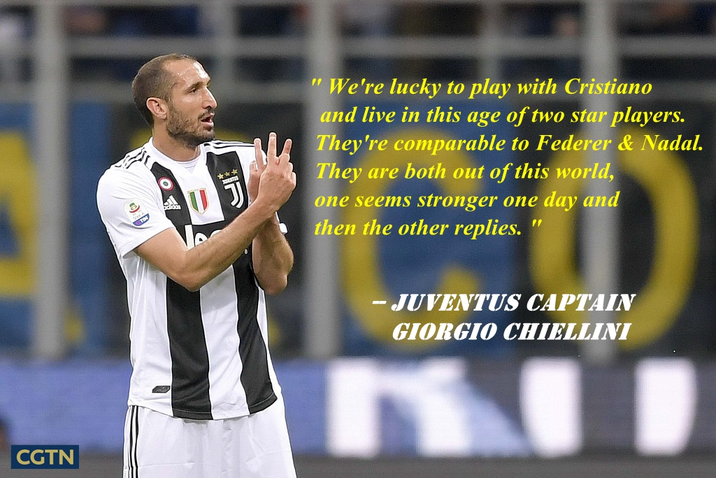 Chiellini believes that he is blessed to be playing in the same era as Cristiano Ronaldo and Lionel Messi. /CGTN Photo