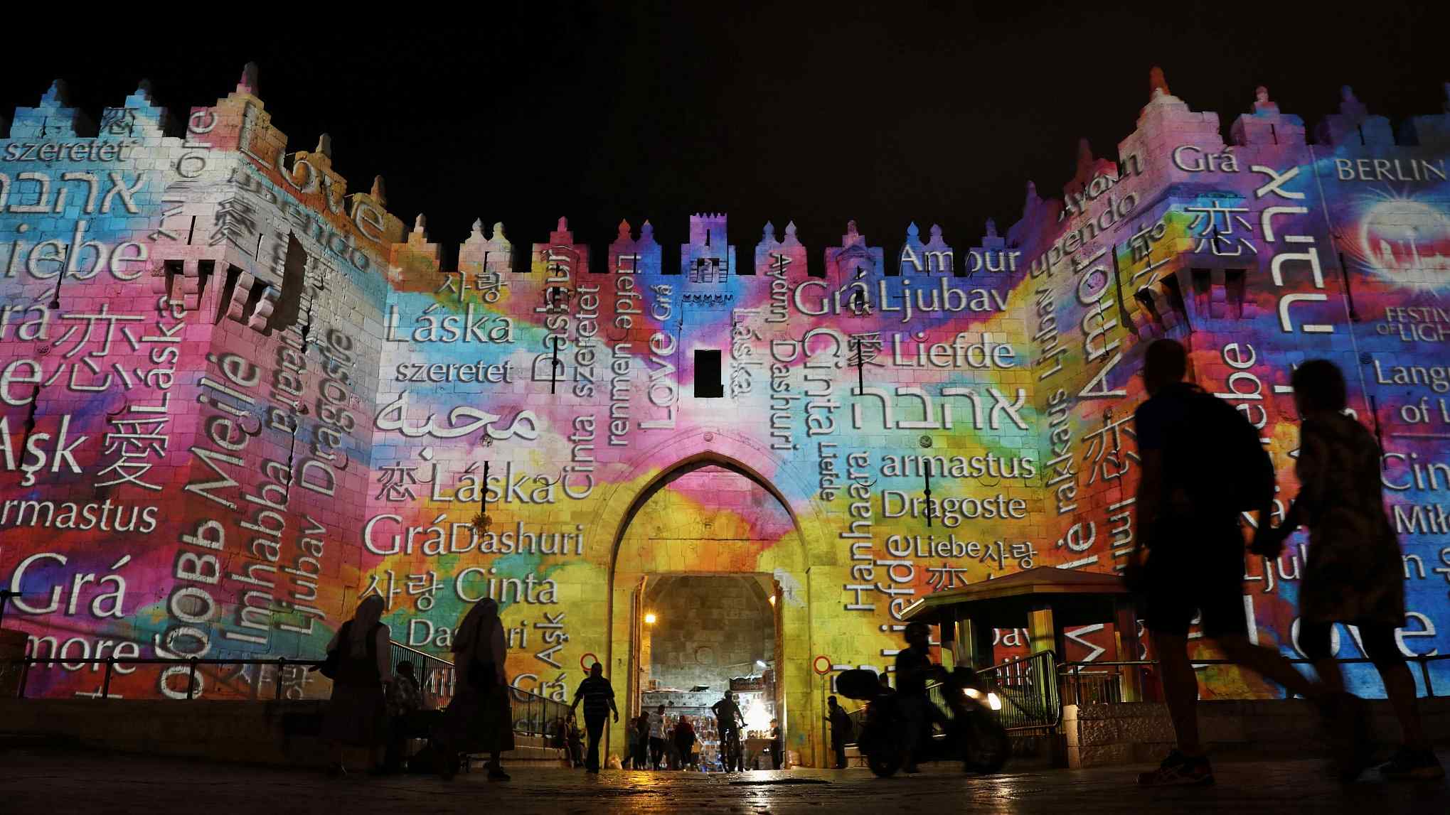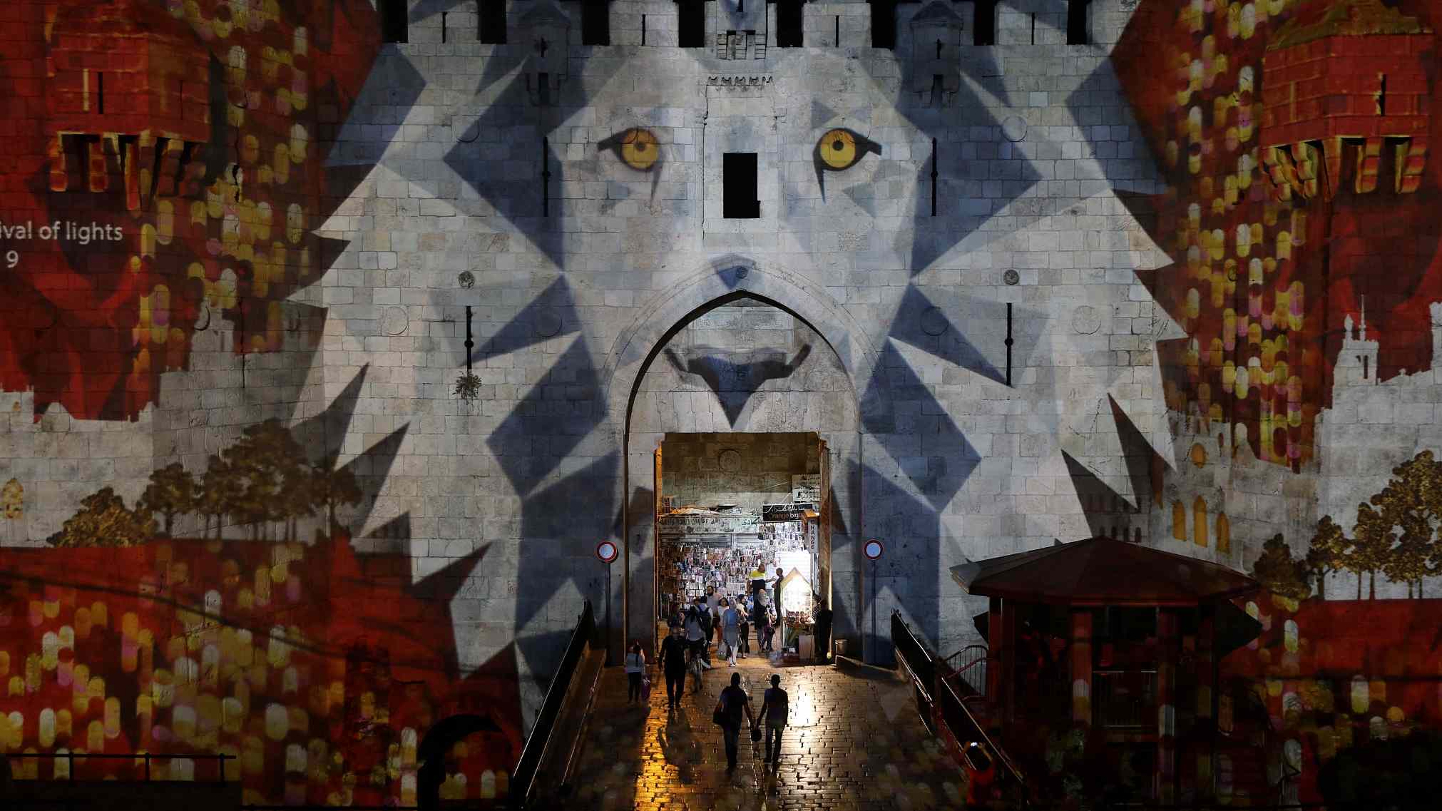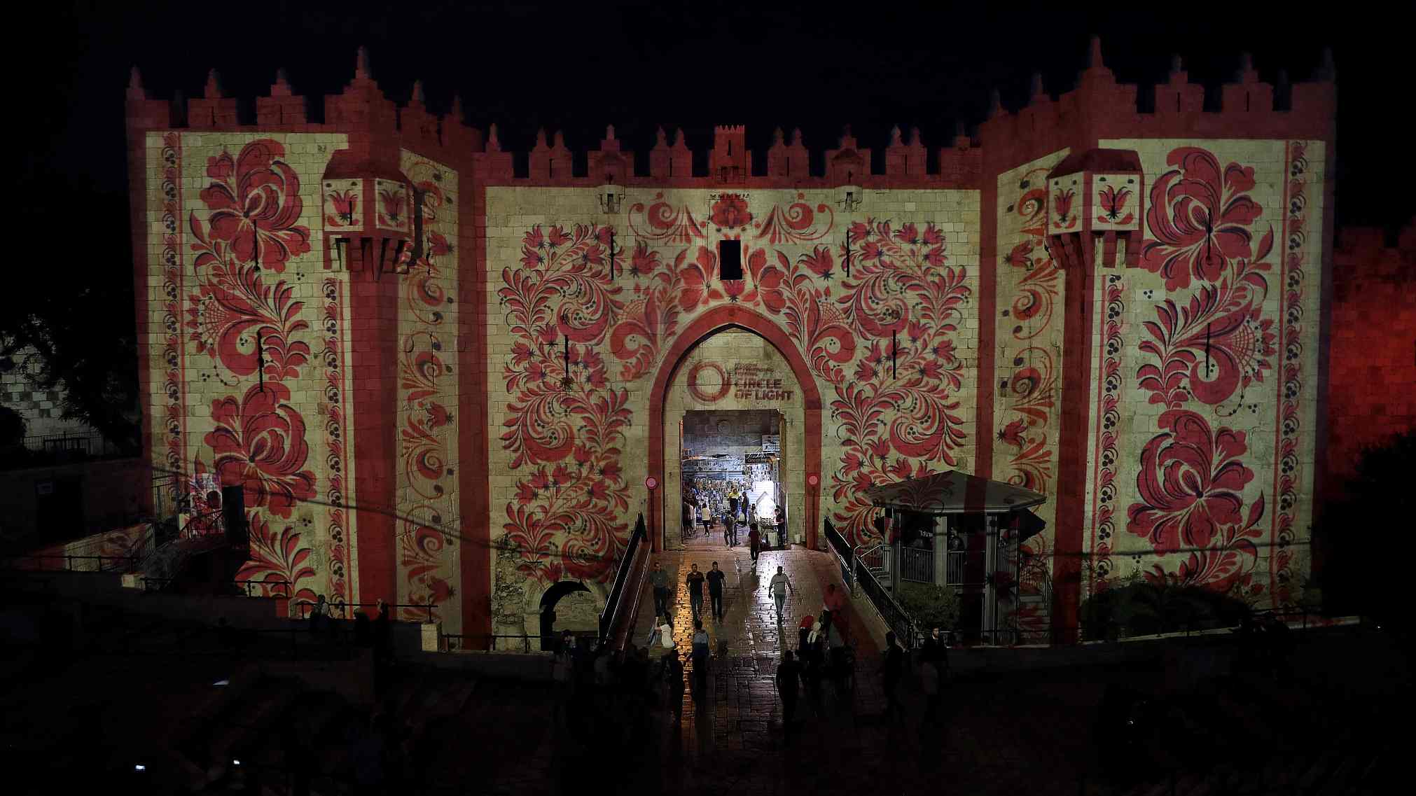 The 10th International Lights Festival is in full swing in the Old City of Jerusalem. People stood near Damascus Gate to witness the beauty of visual projections. /VCG Photo