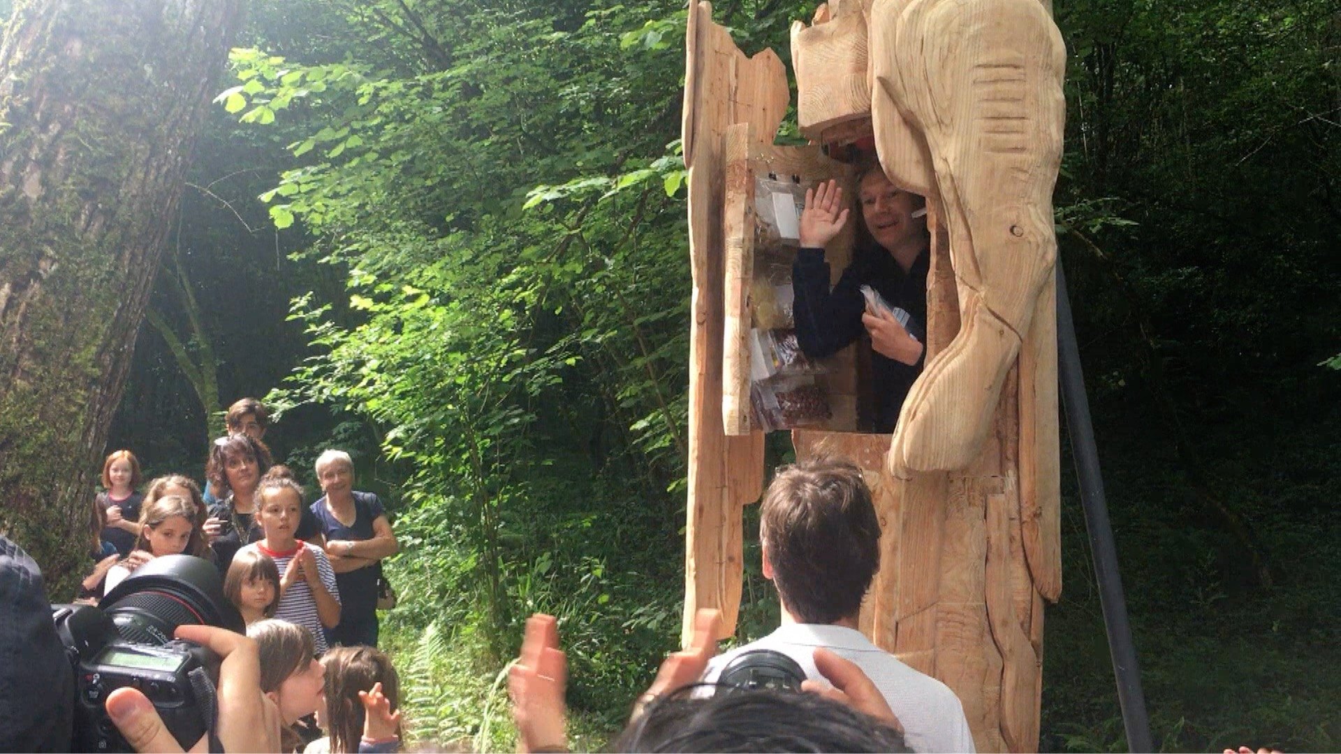 French performing artist Abraham Poincheval on Saturday locked himself up inside a life-size replica of a prehistoric statuette in Aurignac, France where he will stay for a week standing in the dark.