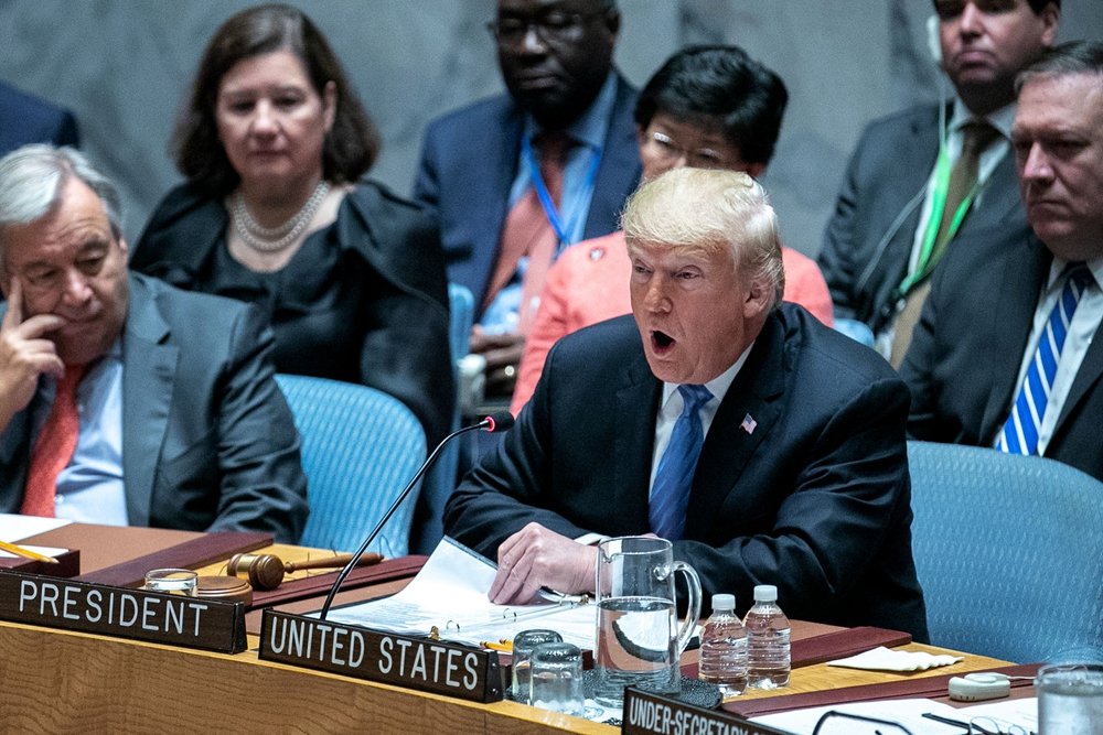US President Donald Trump speaks during a United Nations Security Council meeting in New York, September 26, 2018. /VCG Photo