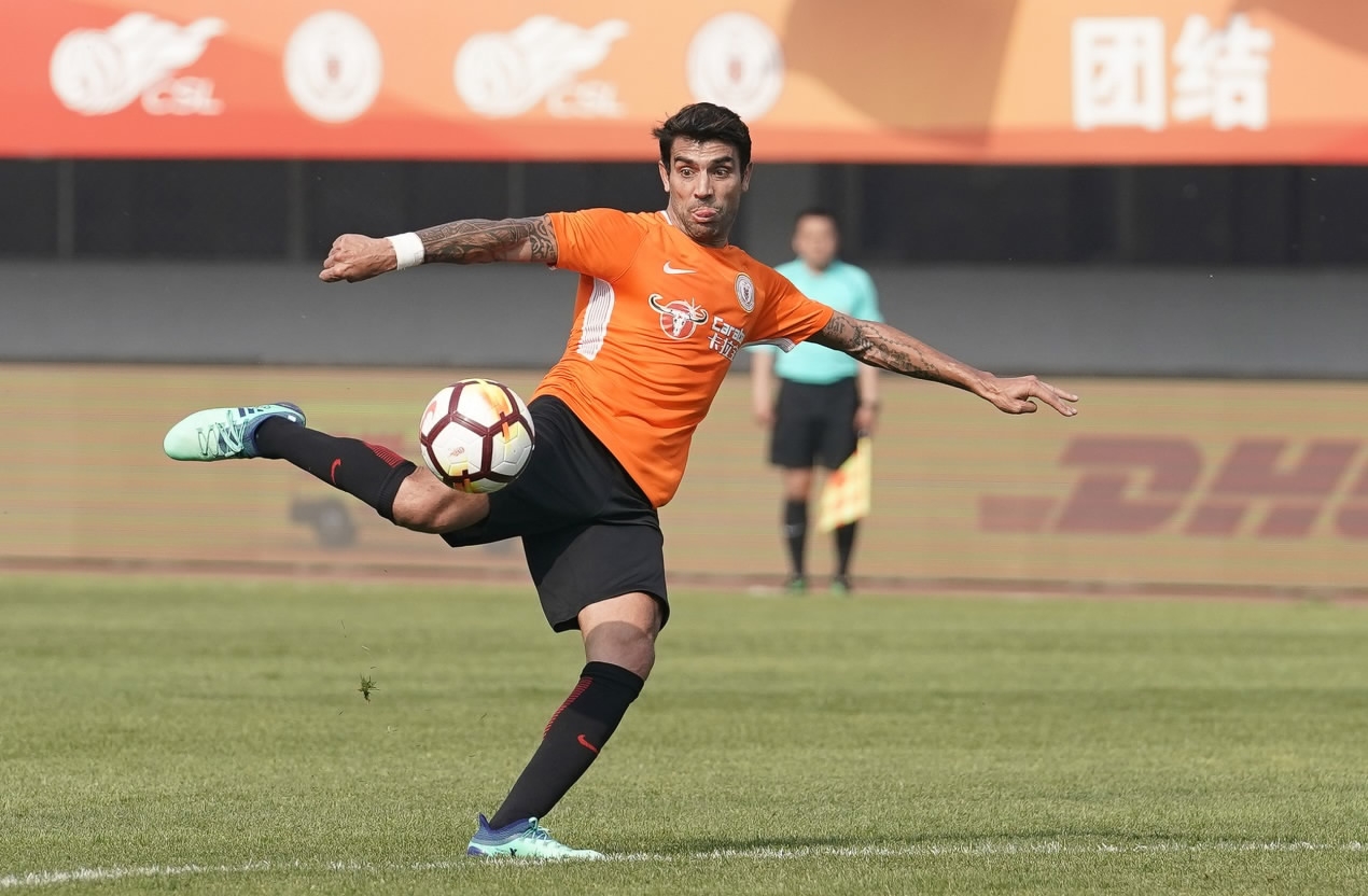 Augusto Fernandez of Beijing Renhe in action against Guangzhou Evergrande. /VCG Photo