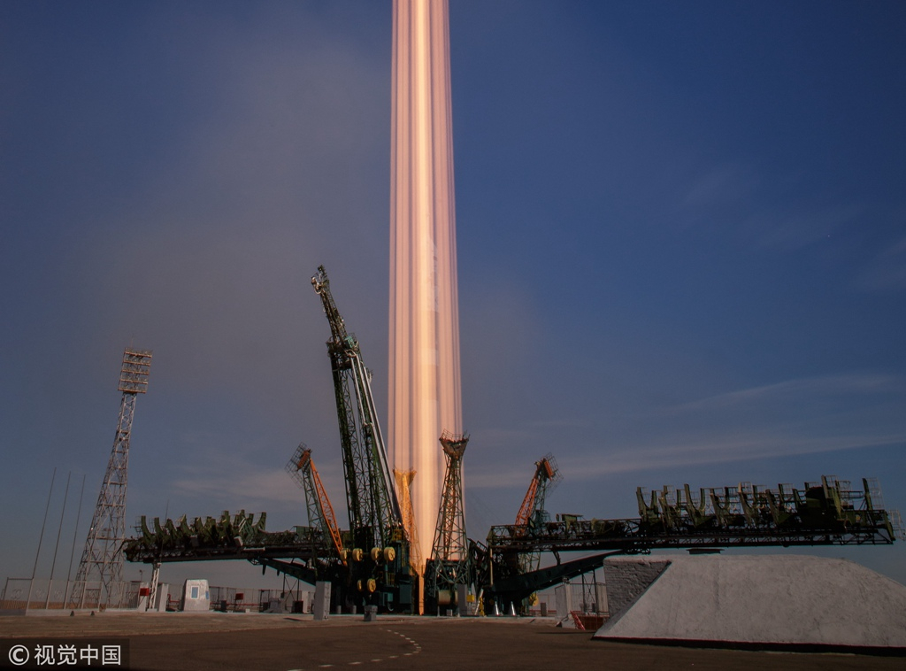 Soyuz MS-10 spacecraft moments before it was launched from the Baikonur Cosmodrome, Kazakhstan,October 11, 2018. /VCG Photo