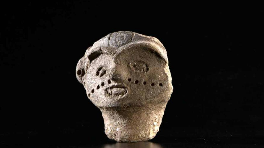 The statue, made with earth containing mica powder and quartz, is a flickering tattooed female face with marks emblazoned on her forehead that archaeologists have judged as a sun symbol.