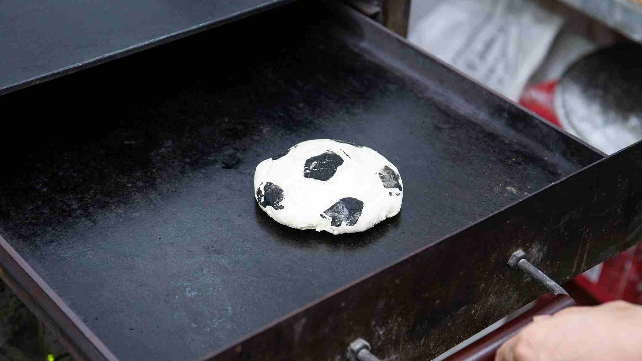 The restaurant revisited the roujiamo, a Chinese-style burger, turning it into an edible ball with the distinctive black and white patterns. Patrons could couple it with salads made from ingredients with similar colors to the national flags of France, Brazil and other competing nations in the tournament. /VCG Photo