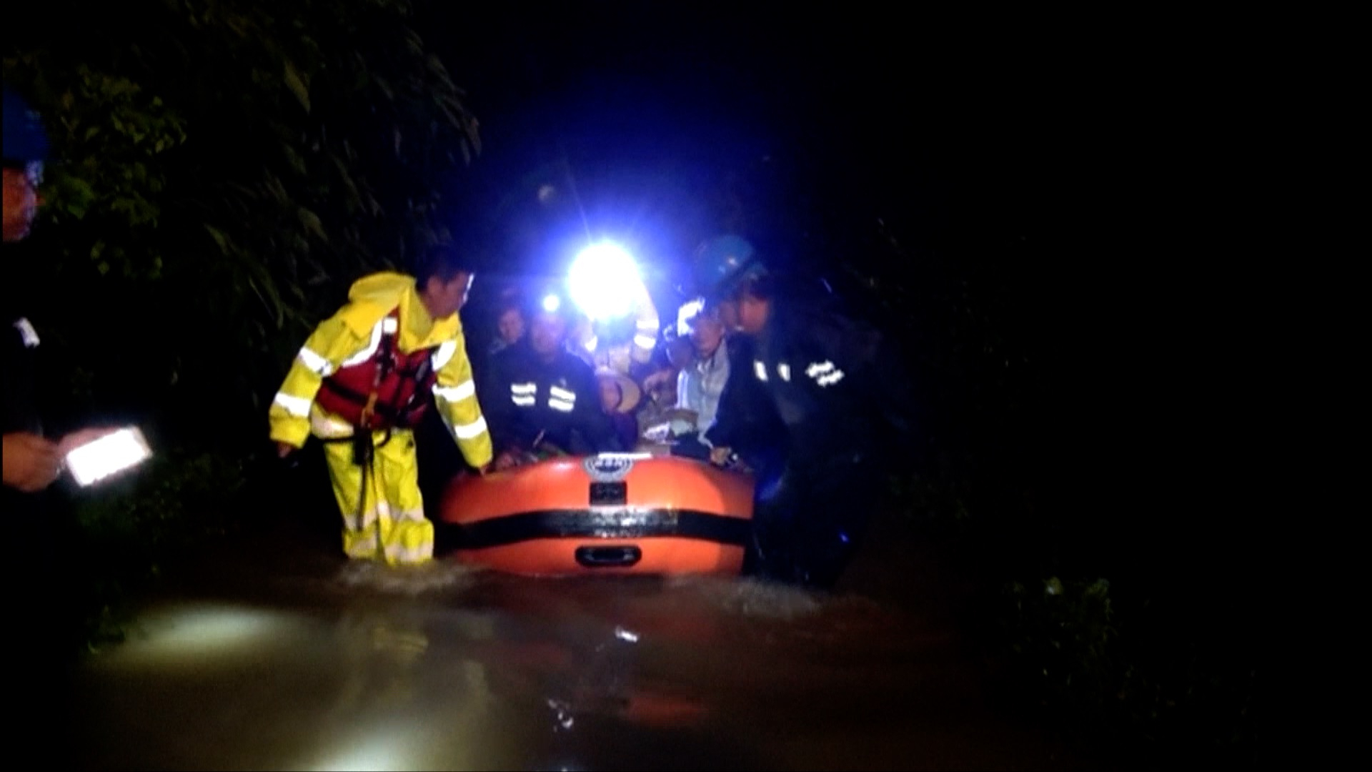 Firefighters rescued 182 trapped residents from rising floodwater in Wenchang City, south China's Hainan Province, as Typhoon Bebinca dumped heavy rains across the area. Rains lashed parts of the city on Wednesday afternoon, causing rivers to swell and trapping many villagers. The local fire department dispatched 24 firefighters, four fire engines, three rubber boats and a kayak to rescue the trapped villagers.