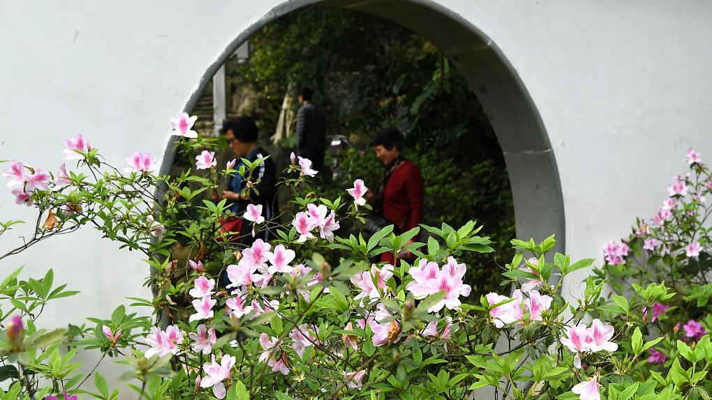 Lovely azalea in a Suzhou garden. /VCG Photo