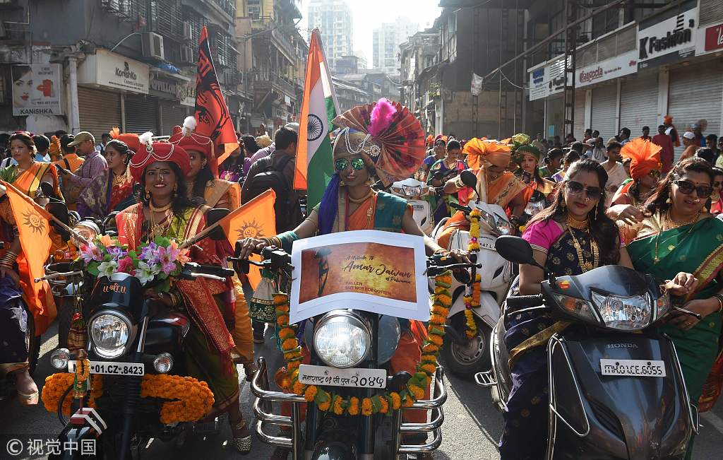 People in India celebrated the festival of Gudi Padwa on Saturday to mark the arrival of spring and the start of the New Year of Marathi and Konkani Hindus. /VCG Photo