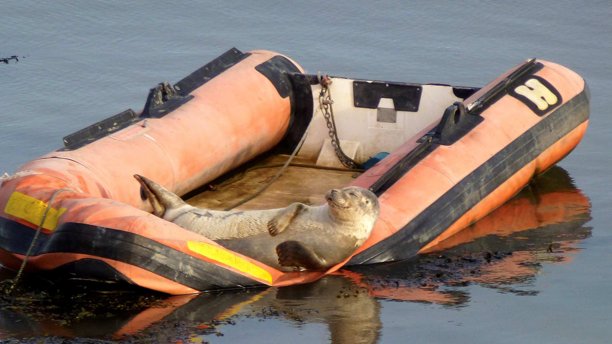 A seal takes a nap on an abandoned dinghy in Britain. /VCG Photo