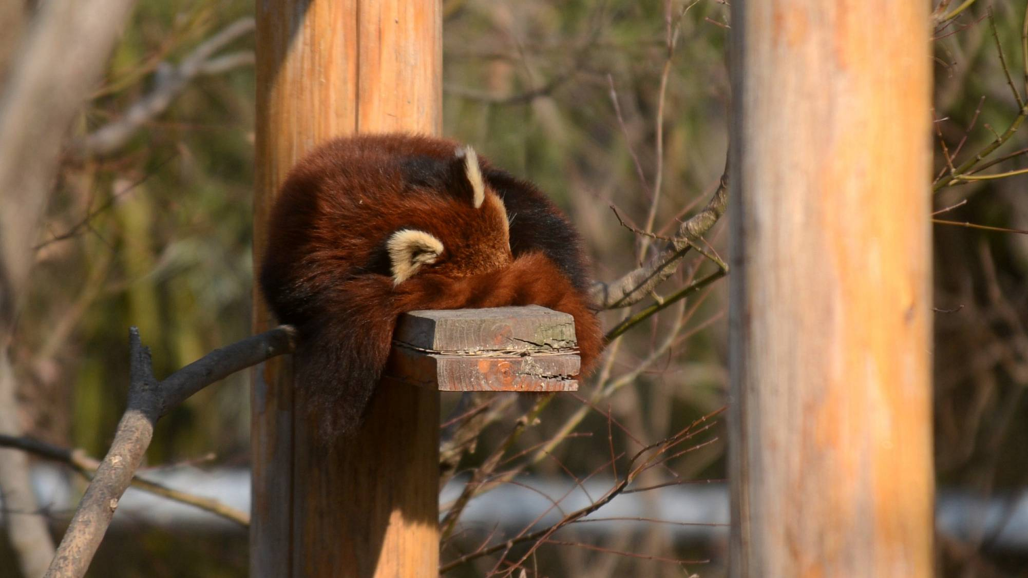 A red panda takes a nap in the afternoon in Yangzhou city, Jiangsu Province. /VCG Photo