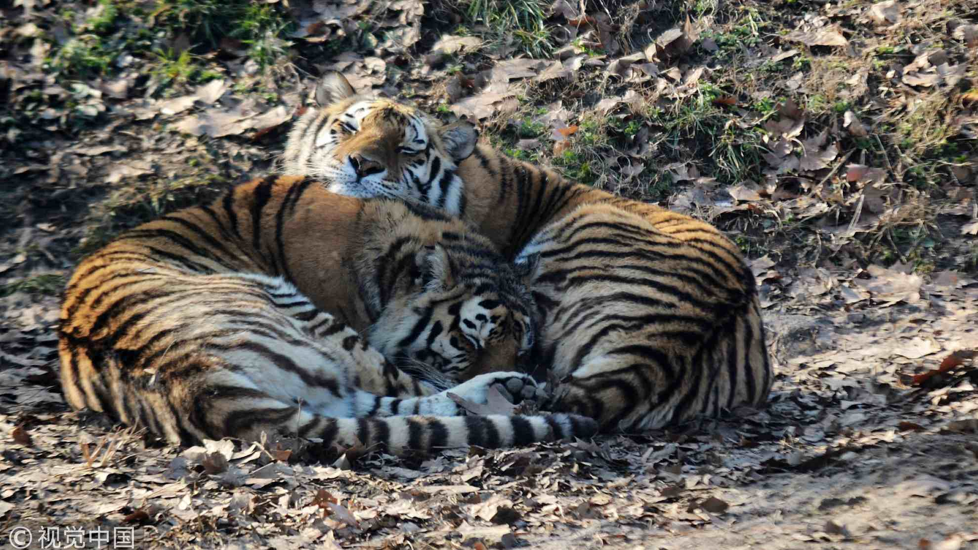 Two tigers enjoy a nap in the afternoon in Yangzhou city of Jiangsu Province, China. /VCG Photo