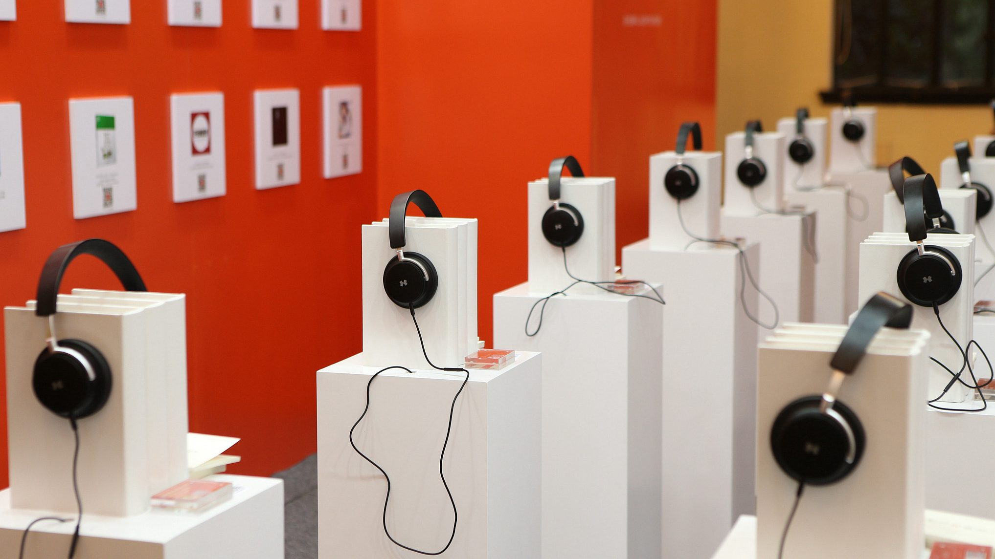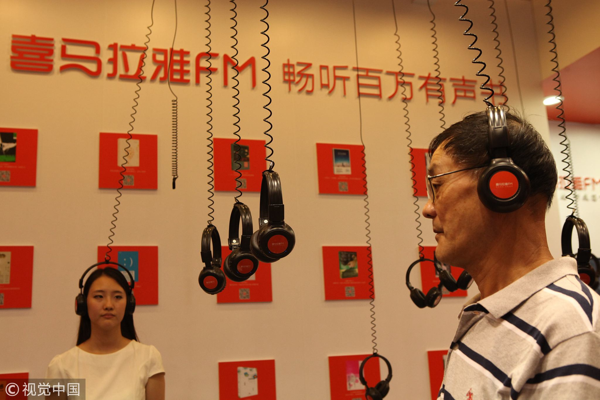 Visitors listen to books at Ximalaya FM exhibition area during Shanghai Book Fair. /VCG Photo