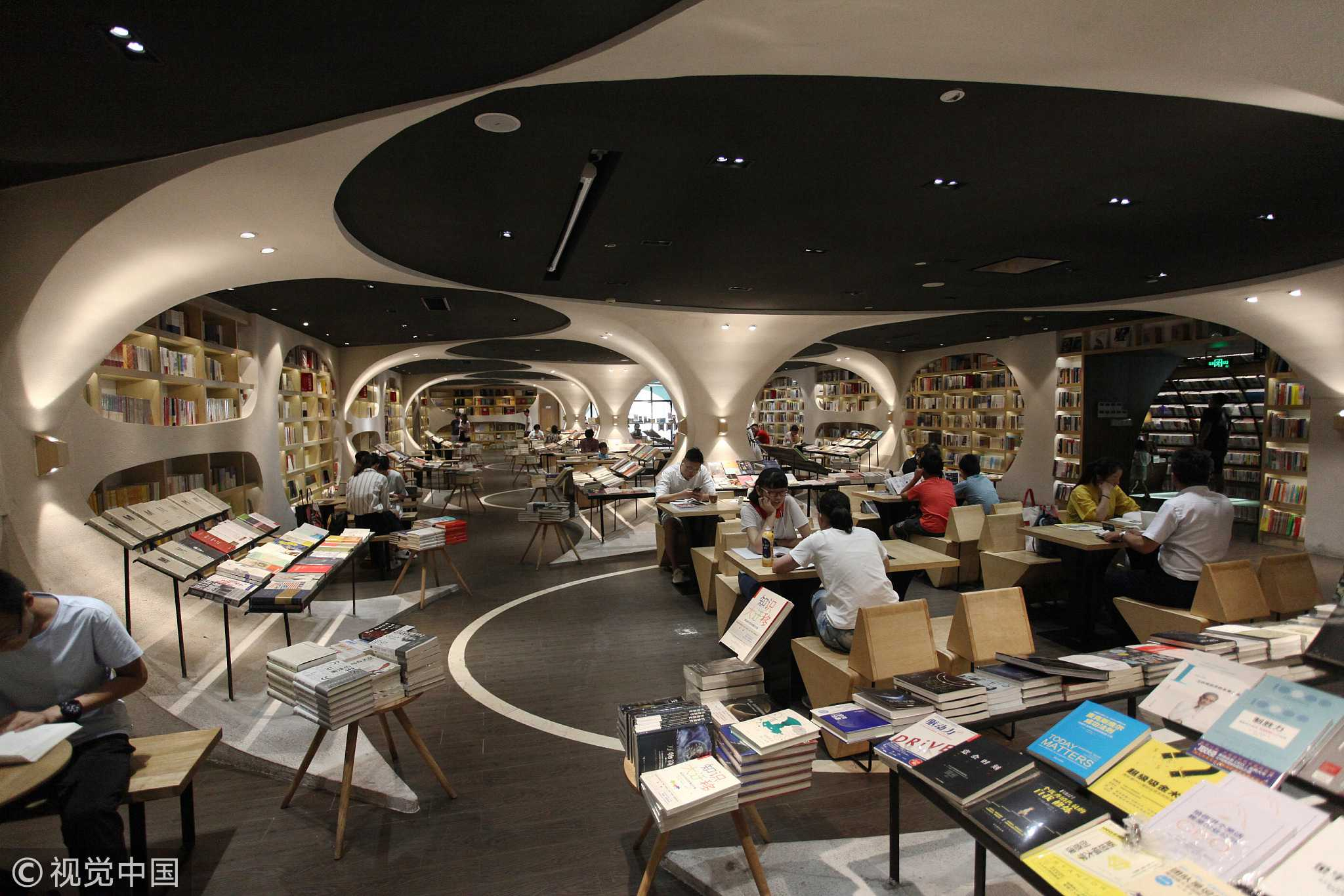 Chinese residents spend summer in a bookstore in Yangzhou city, Jiangsu Province. /VCG Photo