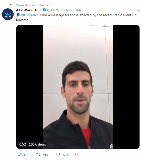 Screenshot of Djokovic's video message on Twitter