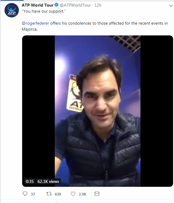 "I have seen him helping in the village where he comes from and to see that is super-inspiring. Rafa, you have our support. We are thinking of all the people in Majorca. We wish you strength in these difficult times and I hope to be back on Majorca soon," said Federer.