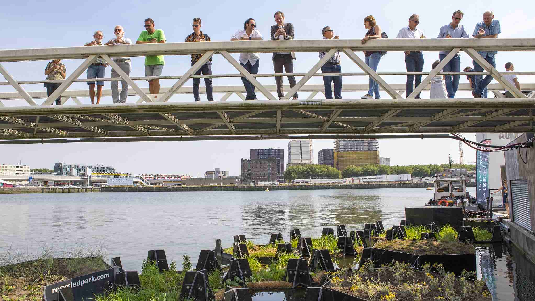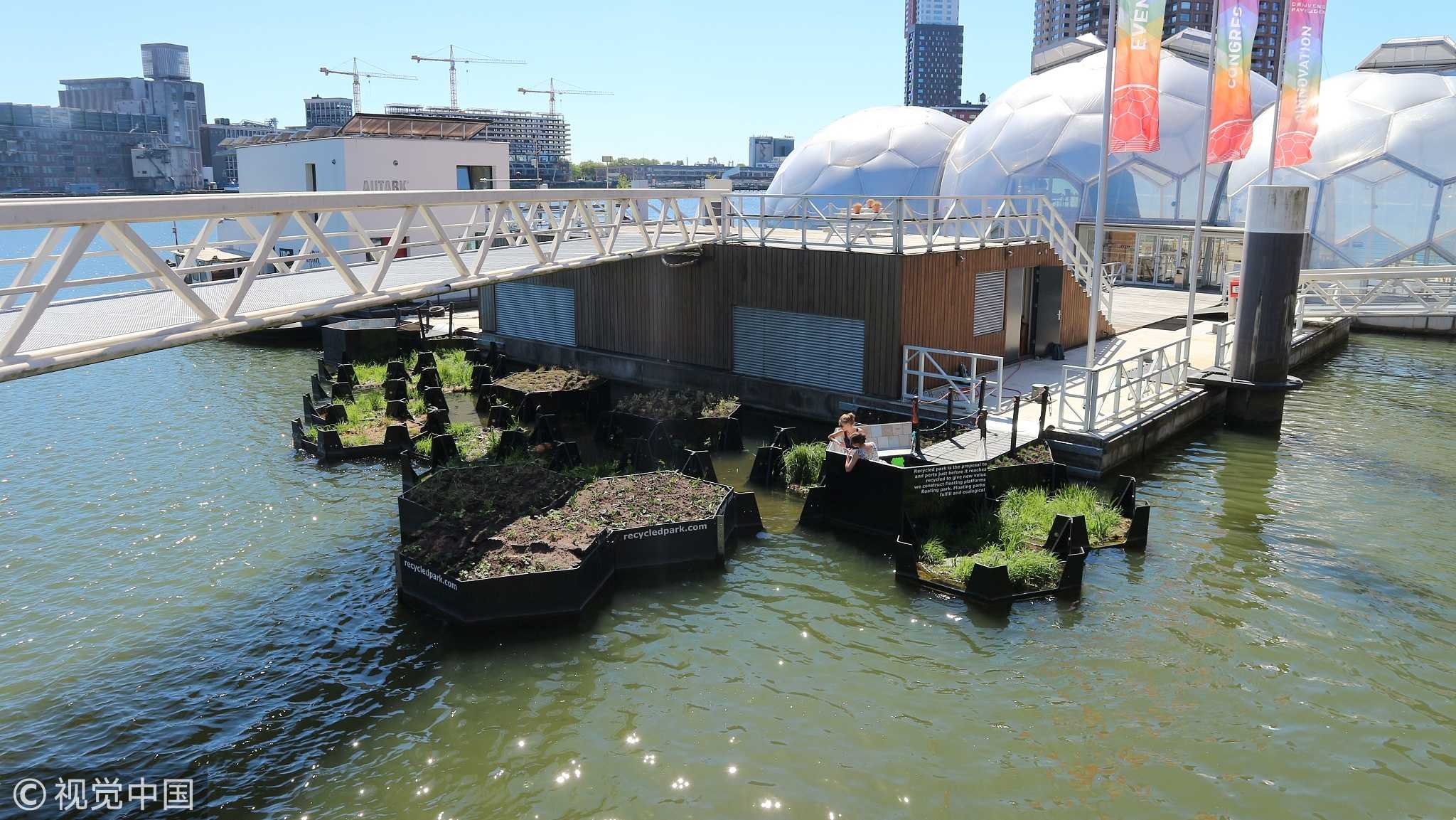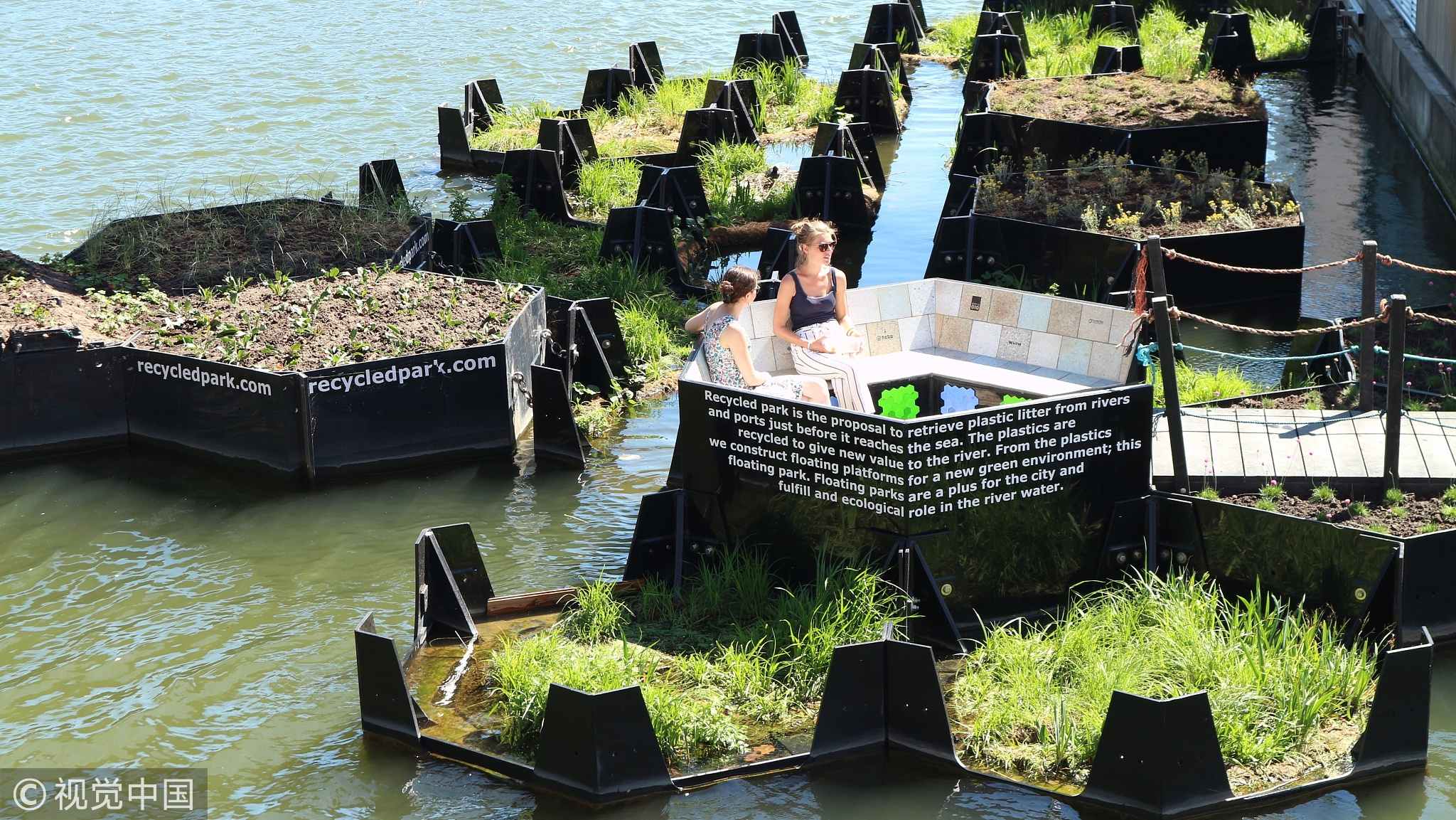 A floating park made of plastic waste opened to visitors in the Rotterdam port on Wednesday. /VCG Photo