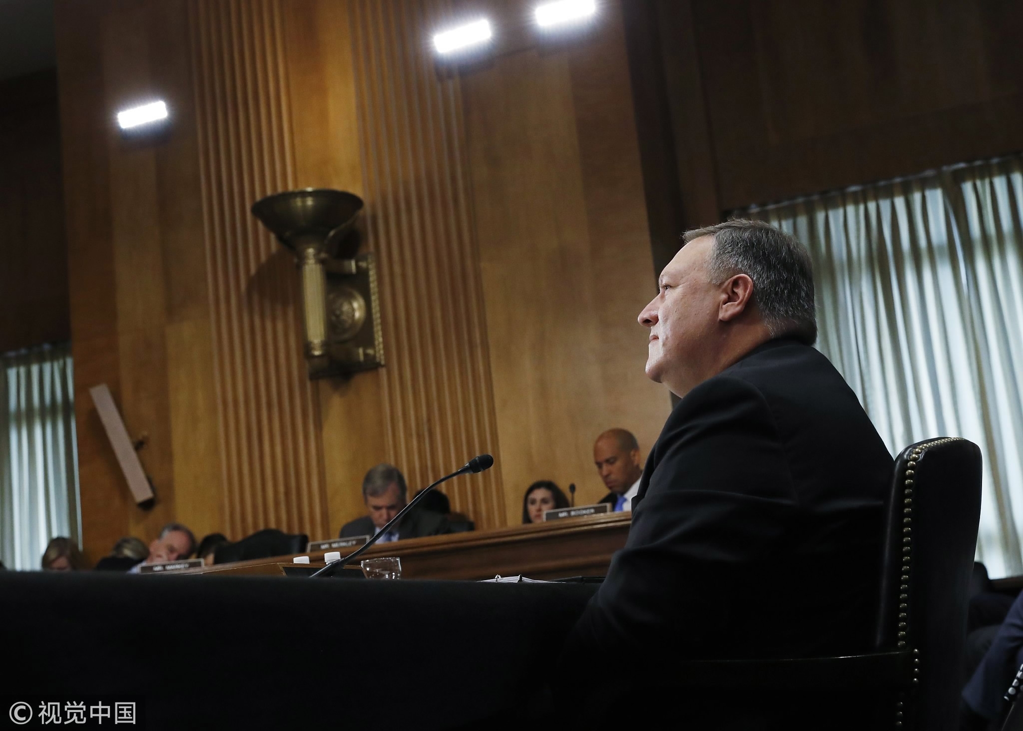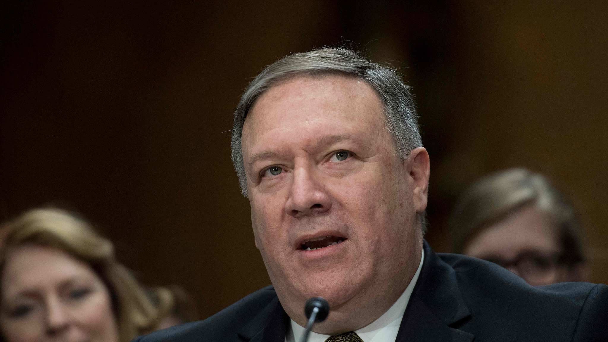 CIA Director Mike Pompeo testifies before a Senate Foreign Relations Committee confirmation hearing on Pompeo’s nomination to be secretary of state on Capitol Hill in Washington, DC, US, April 12, 2018. /VCG Photo
