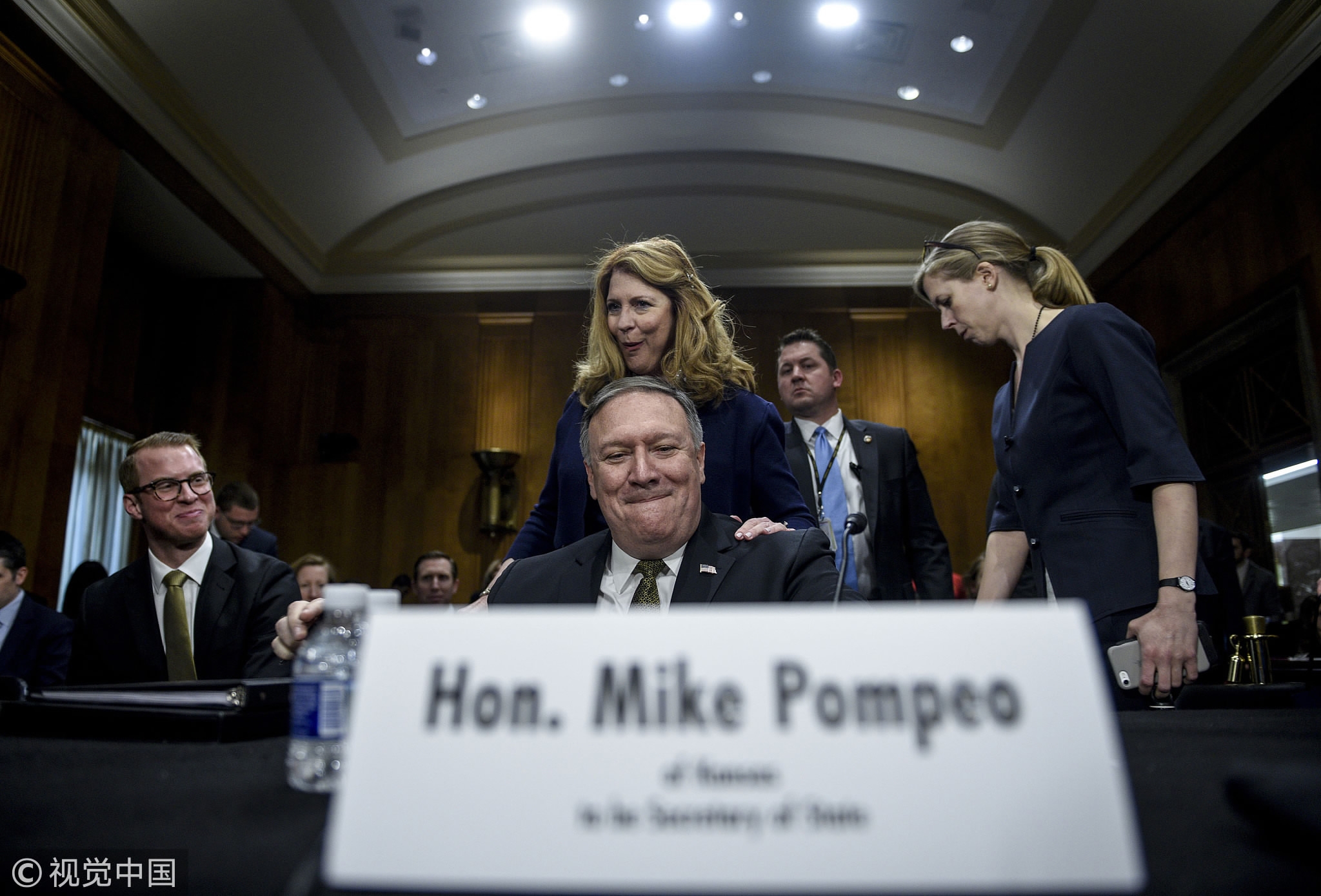 Michael Pompeo prepares to speak during the second round of a Senate Foreign Relations Committee confirmation hearing on Capitol Hill in Washington, DC, April 12, 2018. /VCG Photo