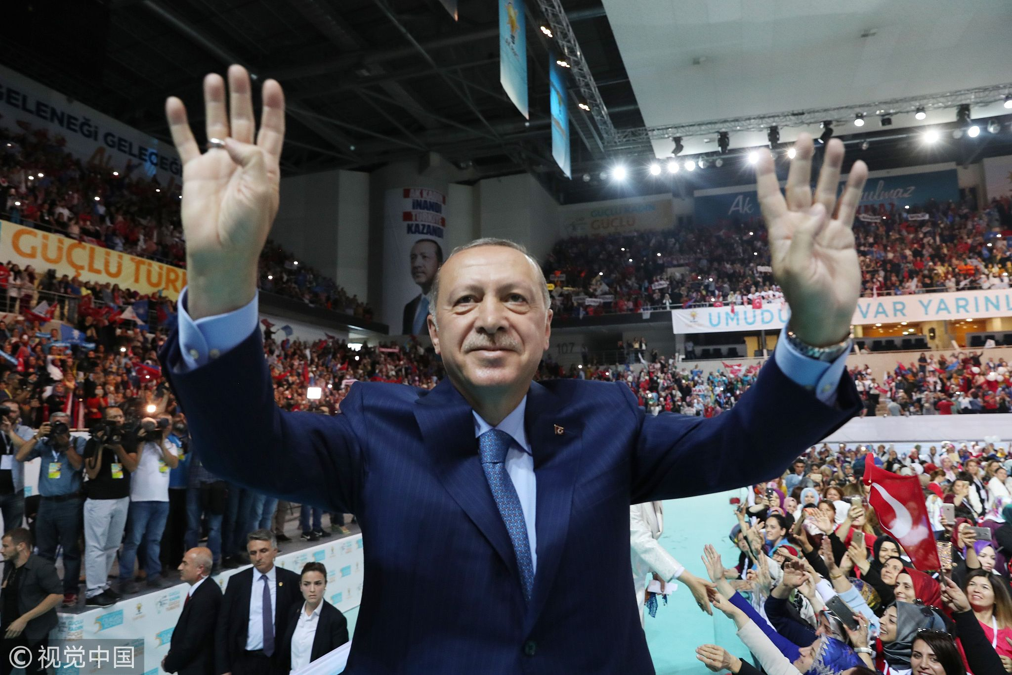 Turkish President Tayyip Erdogan greets members of his ruling AK Party during a meeting in Ankara, August 4, 2018. /VCG Photo
