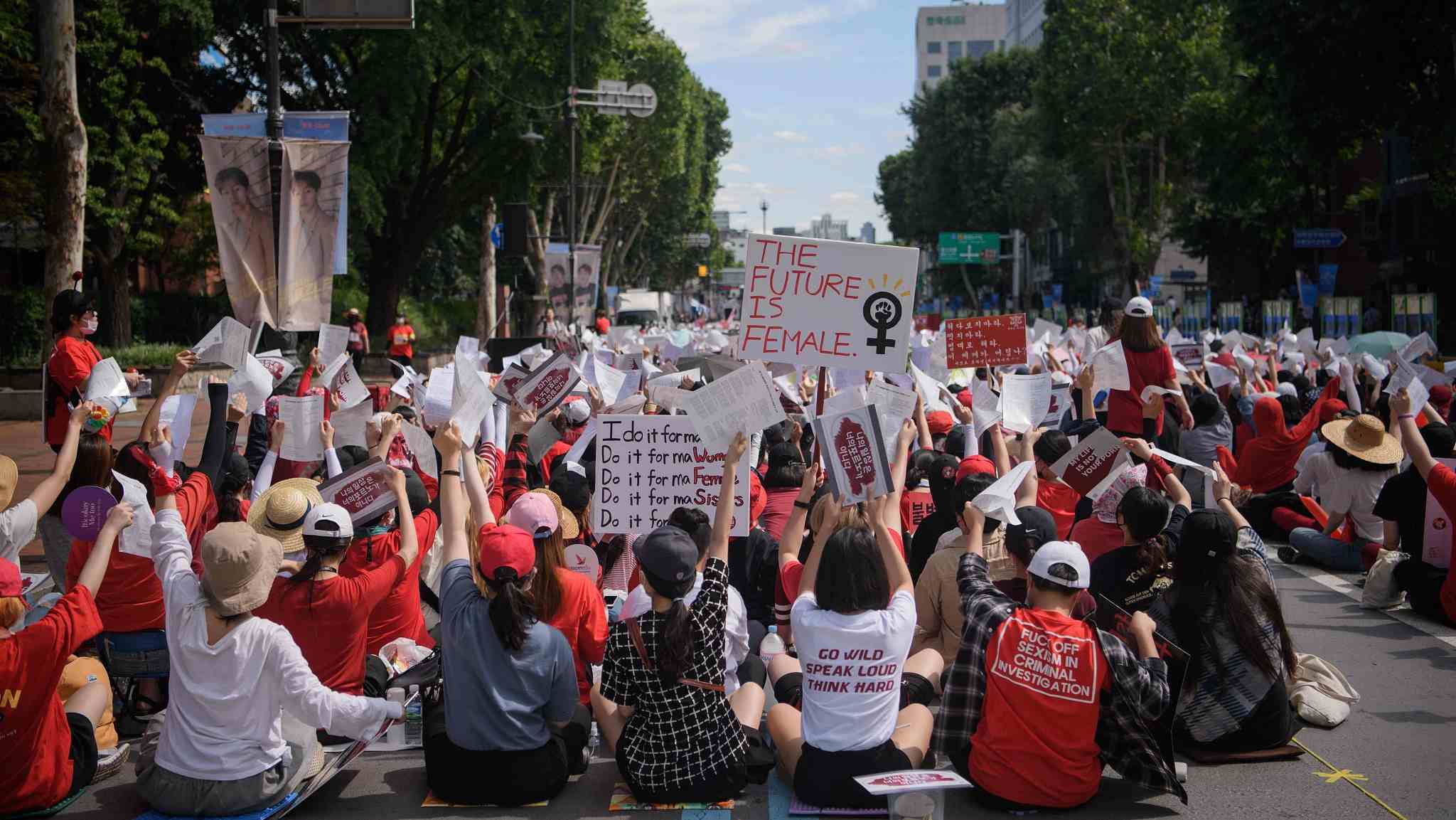 Despite these challenges, feminists are seeing some traction in South Korea. Last weekend, tens of thousands of women