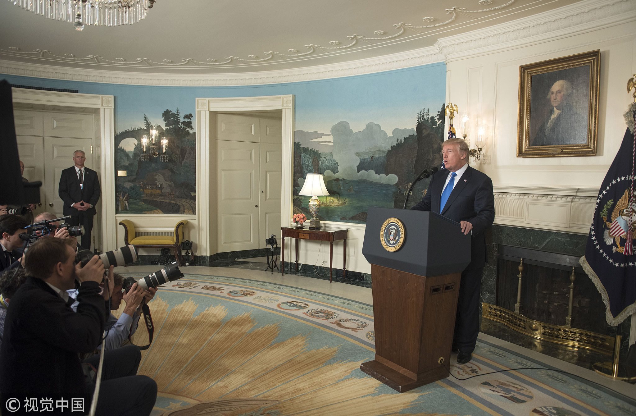 US President Donald Trump delivers remarks on the Iran Strategy in the Diplomatic Reception Room at the White House in Washington, DC on October 13, 2017./VCG Photo.