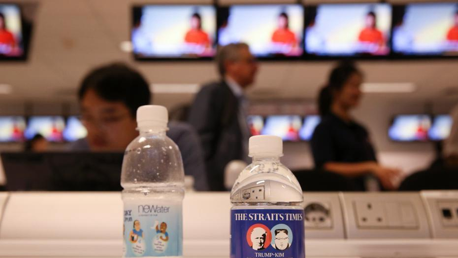 The customized items were made by the Singapore-based newspaper The Straits Times for the summit between US President Donald Trump and Democratic People’s Republic of Korea (DPRK) leader Kim Jong Un. /Chinanews Photo