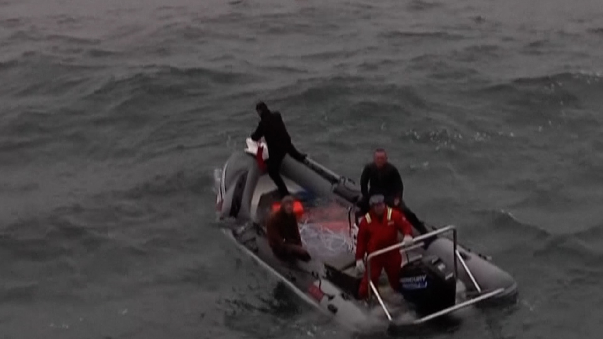 Four fishermen trapped on a capsizing fishing dinghy off the coast of northeast China were rescued by a passing Chinese navy vessel on Friday.