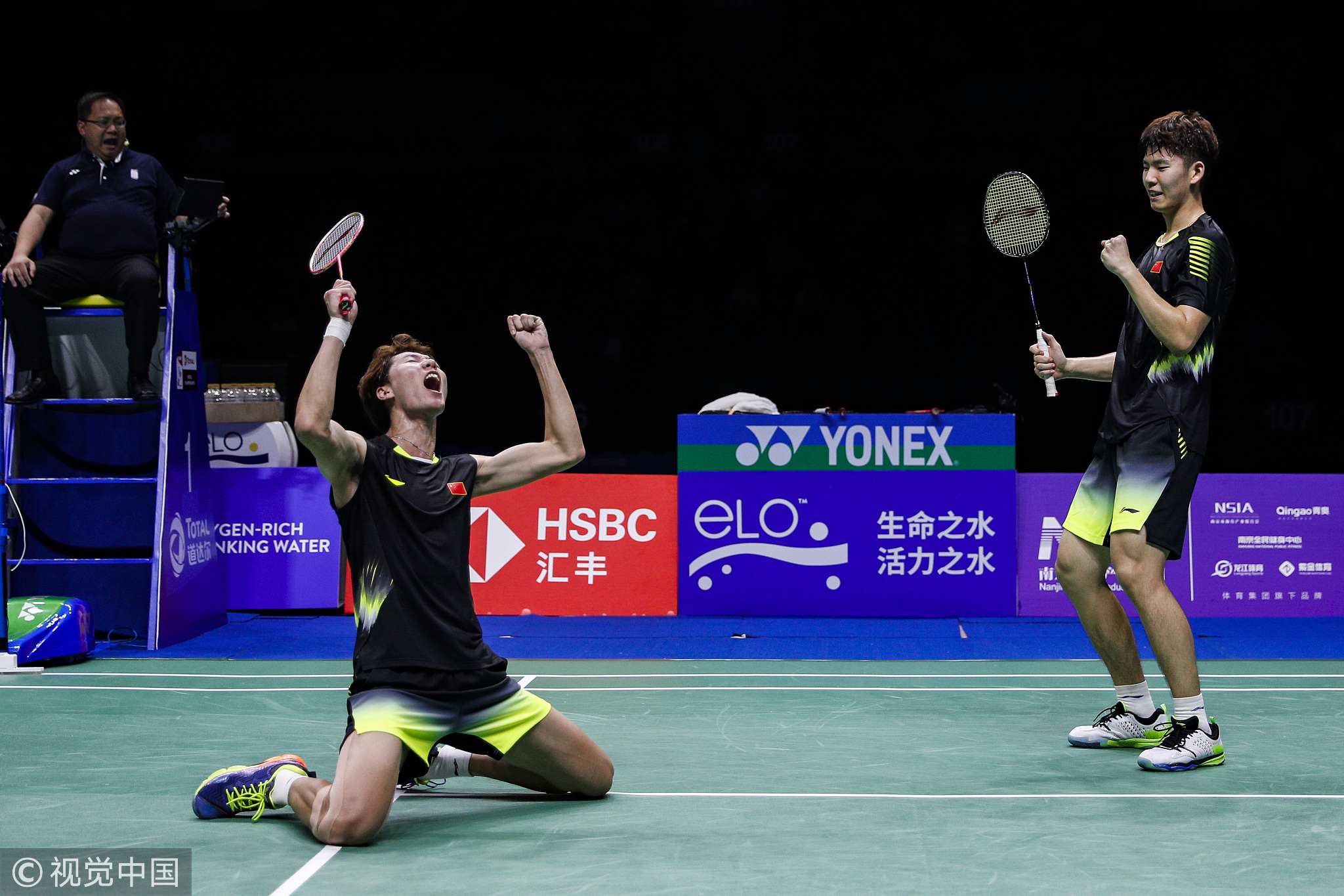 The second-seeded duo needed only 30 minutes to cruise past third seeds Tang Chun Man and Tse Ying Suet 21-6, 21-10. In the other semifinal held later, top seeds Zheng and Huang Yaqiong came from one game down to overcome another home pair, Zhang Nan and Li Yinhui, 19-21, 21-12, 21-10.