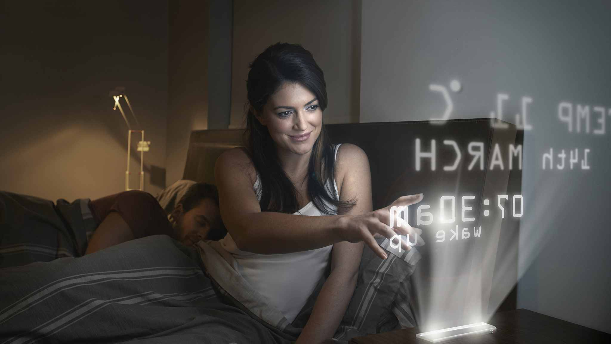 A woman is setting the futuristic alarm clock /VCG Photo