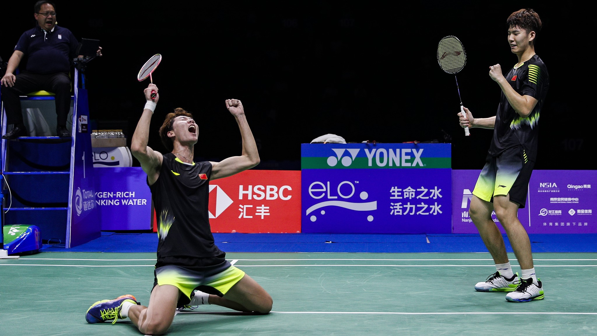 China's Li Junhui/Liu Yuchen win gold in the men's doubles at the 2018 BWF World Championships. /VCG Photo