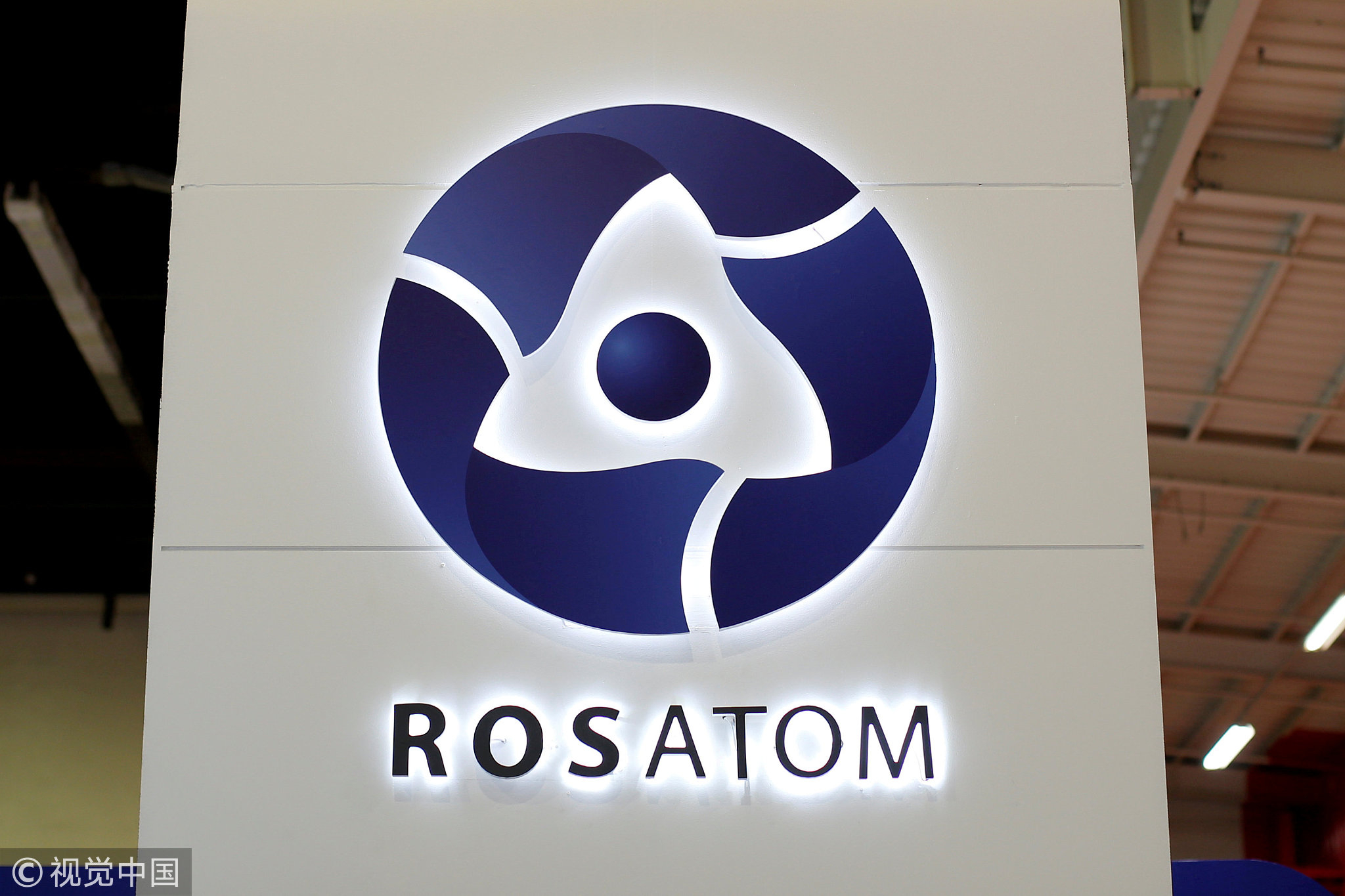October 14, 2014: The logo of Russian state nuclear monopoly Rosatom is pictured at the World Nuclear Exhibition 2014, the trade fair event for the global nuclear energy sector, in Le Bourget, near Paris, France. / VCG Photo
