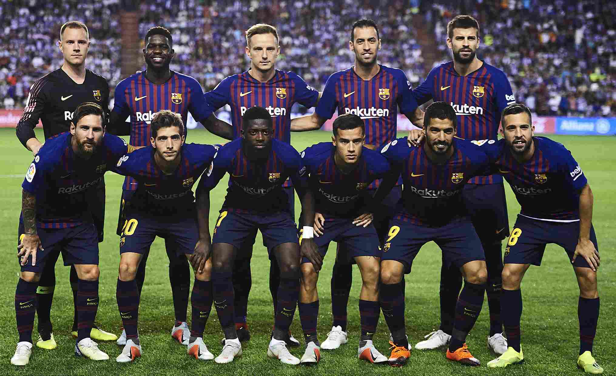 Barcelona's starting line-up pose before the match against Valladolid in La Liga on August 25, 2018. /VCG Photo