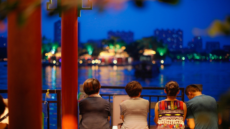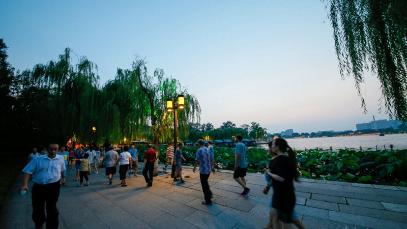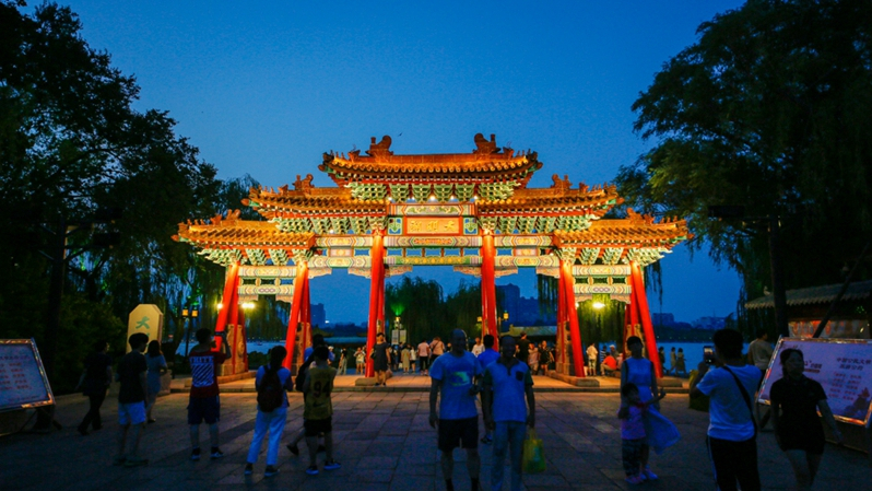 People enjoy a stroll after dark at the Daming Lake Park in Jinan, Shandong Province. /CD Photo