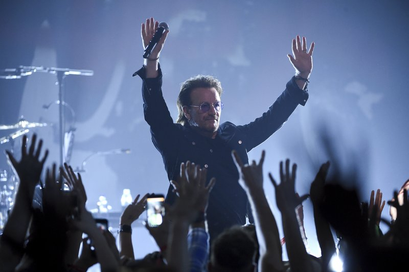 Singer Bono of U2 performs during a concert at the Apollo Theater hosted by SiriusXM on Monday, June 11, 2018, in New York City, New York, US. /AP Photo