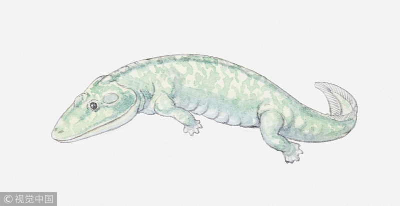Illustration of an early amphibian, Devonian period. /VCG Photo