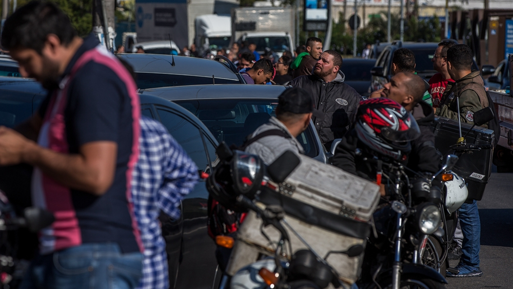 On May 29, drivers await the arrival of fuel to supply motorcycles and cars during the trucker's strike in San Paulo, Brazil. /VCG Photo