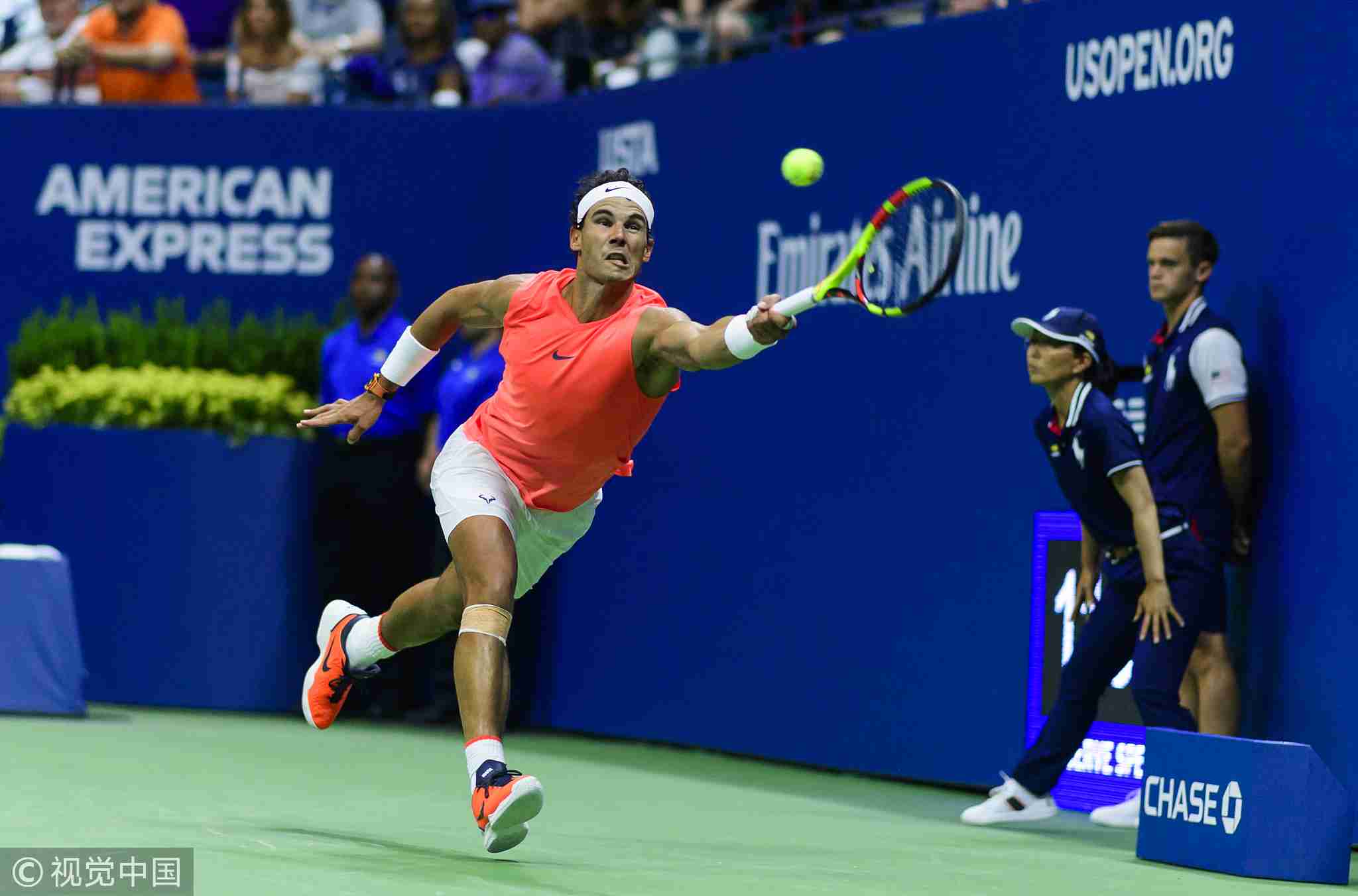 Rafael Nadal of Spain in action against Karan Khachanov of Russia in the third round of the US Open at the USTA Billie Jean King National Tennis Center on August 31, 2018 in New York City, United States /VCG Photo