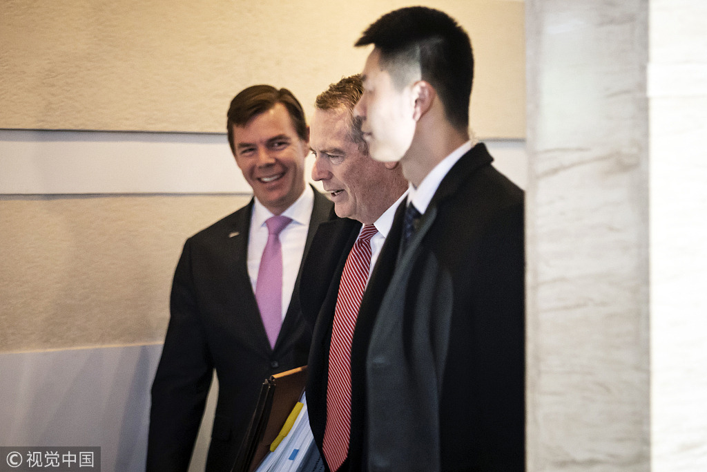 Robert Lighthizer, U.S. trade representative (C), leaves a hotel in Beijing, China, February 14, 2019. /VCG Photo