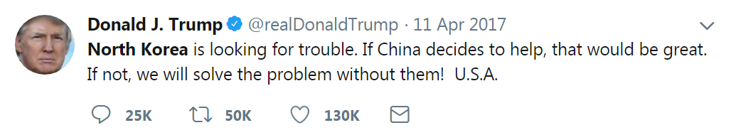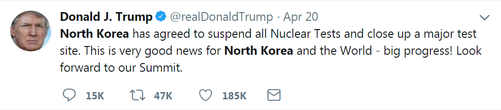 The graphic above lists the number of Trump's tweets mentioning the DPRK each month, starting from his presidential inauguration, January 20, 2017. Trump's tweet density is based on a manual search of @realDonaldTrump's Twitter feed up until June 1, 2018. The search term is "North Korea."