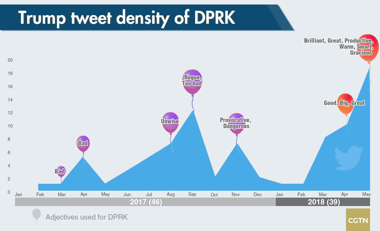 CGTN analyzed Trump's tweets on the Democratic People's Republic of Korea (DPRK) from January 20, 2017, to June 1, 2018.