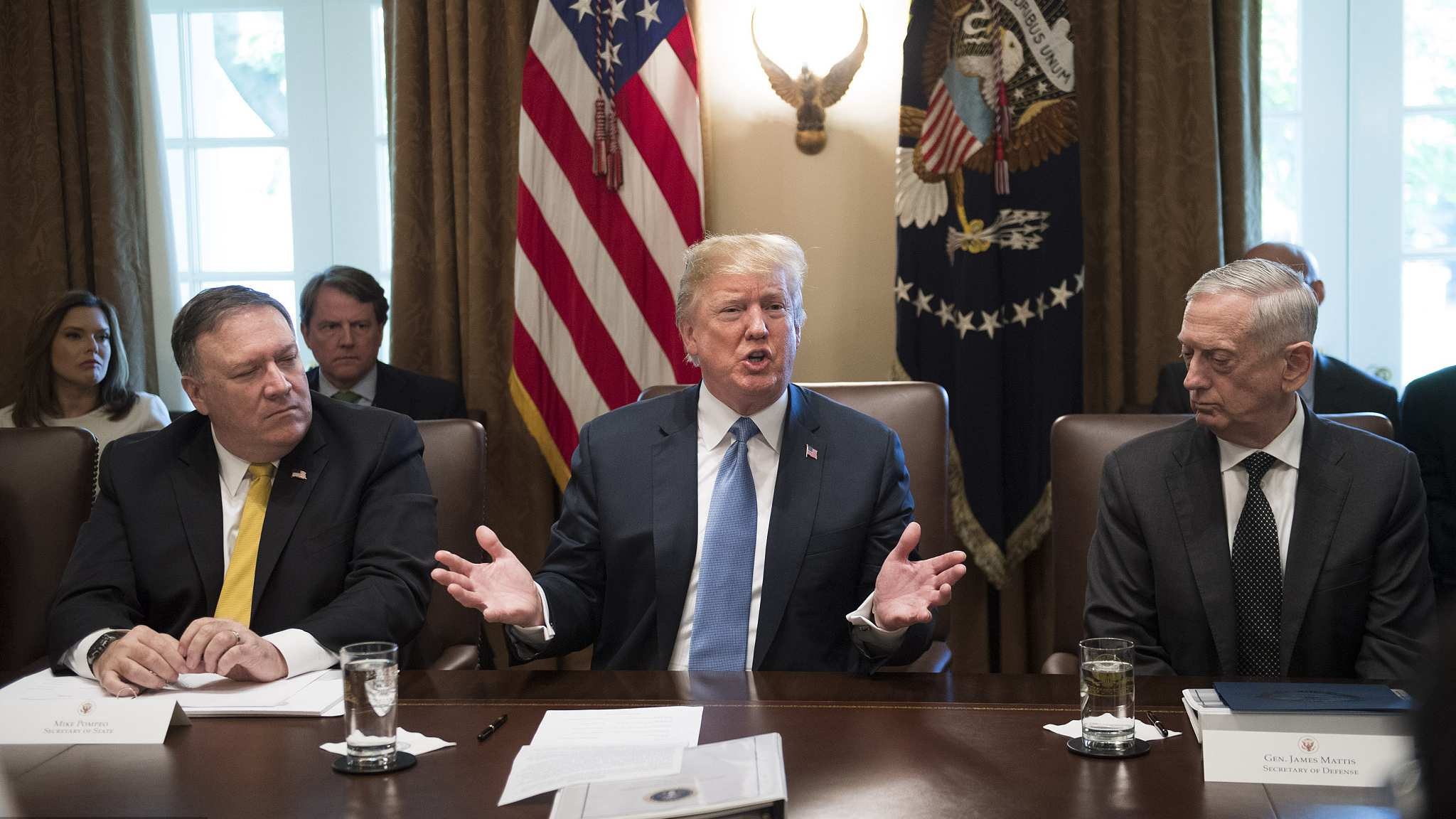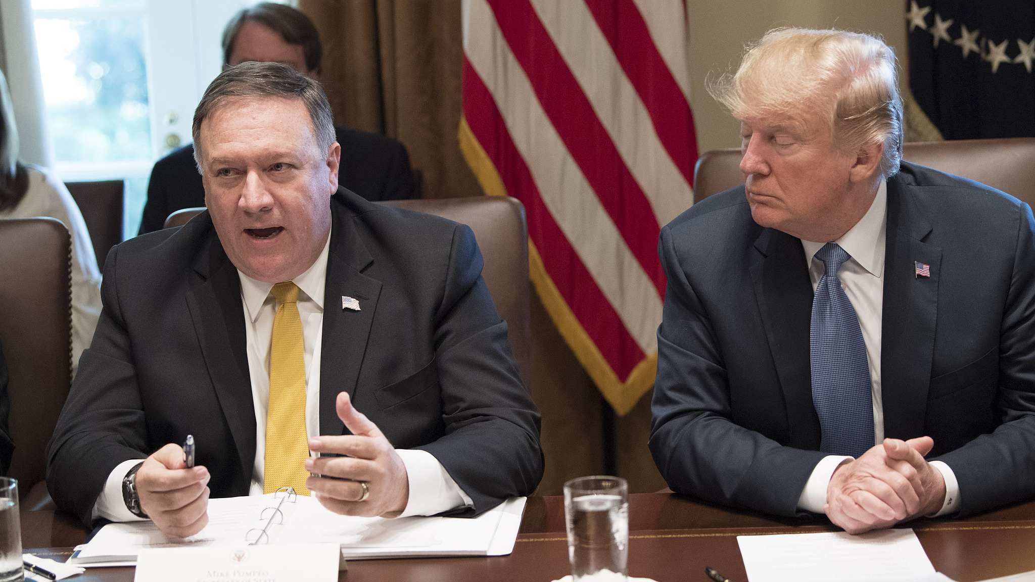 US Secretary of State Mike Pompeo speaks to the media alongside President Donald Trump during a Cabinet meeting at the White House in Washington, DC, June 21, 2018. /VCG Photo