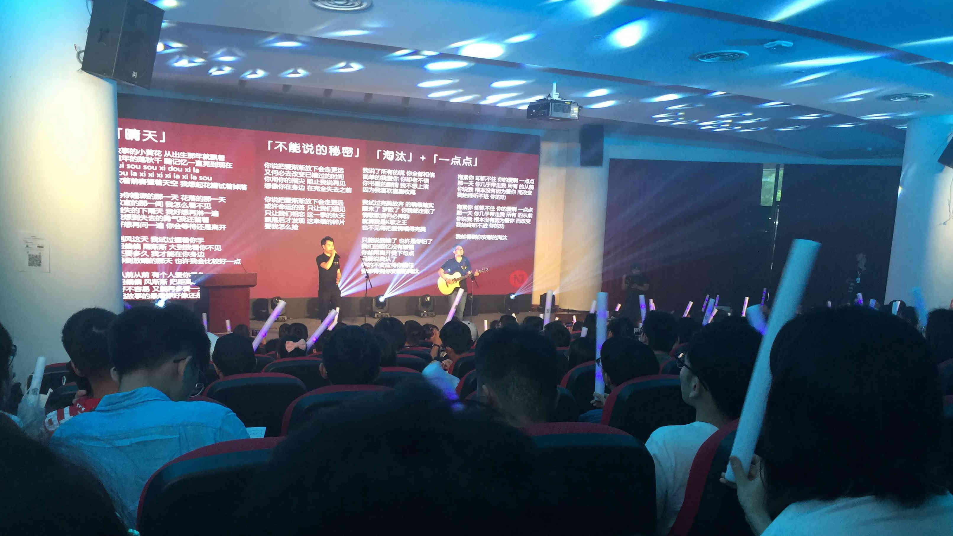 In fact, the lead man on this stage is a teacher, although not in the traditional sense of the word. Zhu Wei has swapped the classroom for a computer, through which he teaches his students online. His 300-strong audience today are not fans in the familiar sense, although the glow sticks and the swaying along to the music would make you think otherwise. They are his students, chosen from among his 1.6 million followers on microblogging Chinese site Weibo, to attend this promotional event.