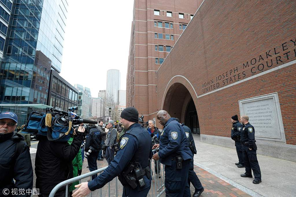 Police set up barricades at the John Joseph Moakley United States Courthouse during a hearing on the college admissions scandal in Boston, U.S., March 29, 2019. /VCG Photo