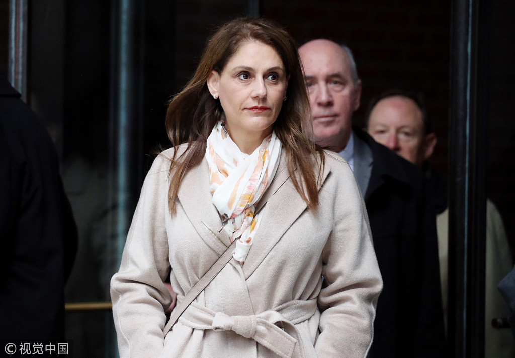 Michelle Janavs, whose family owns food manufacturing company Chef America, maker of Hot Pockets, leaves the John Joseph Moakley United States Courthouse in Boston, U.S., March 29, 2019. /VCG Photo
