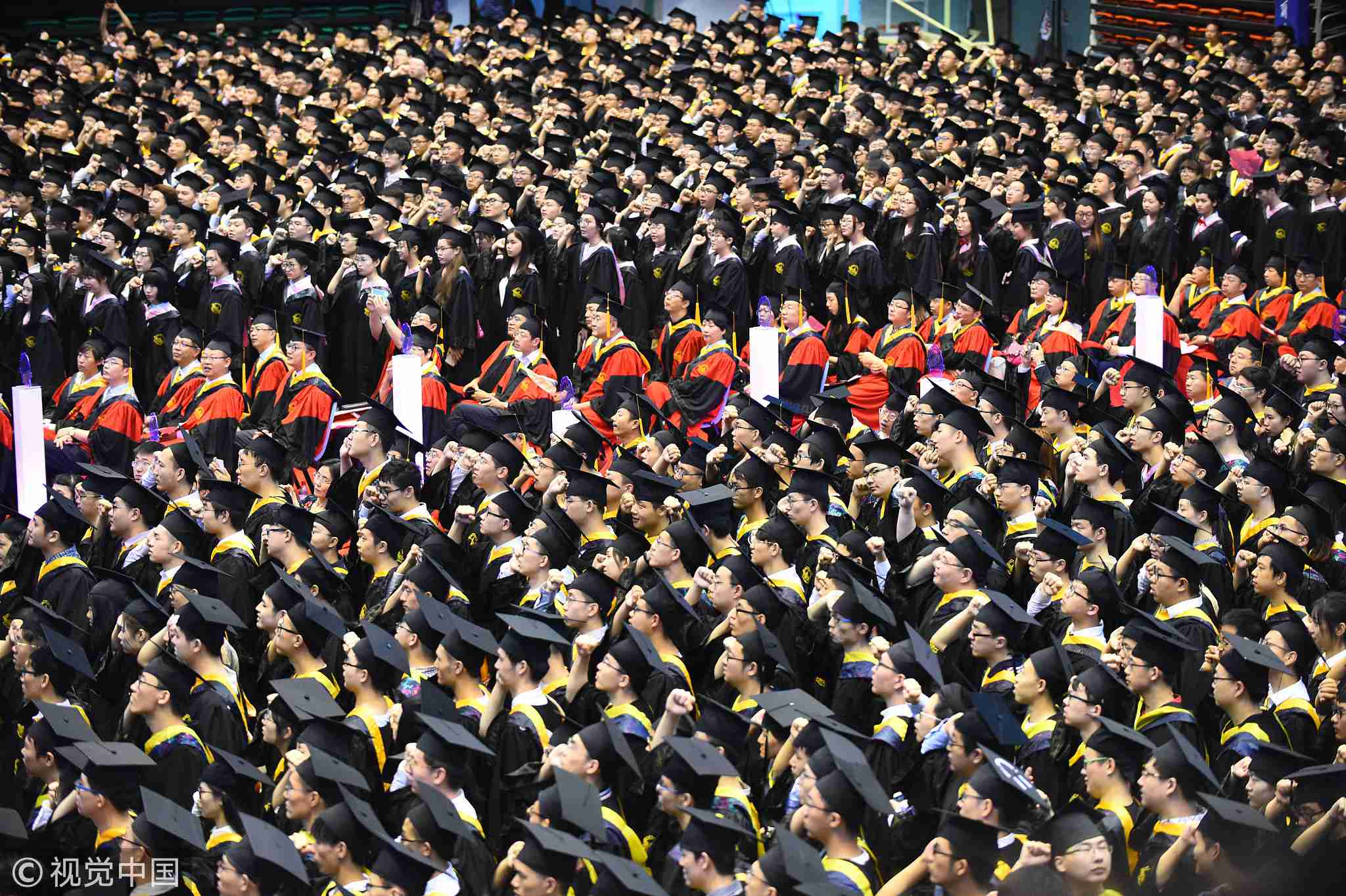 Students attend their graduation ceremony at a Chinese university. /VCG Photo