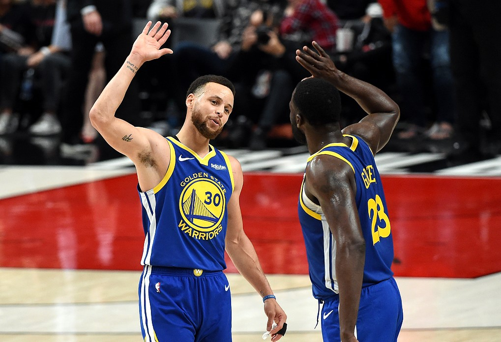 Stephen Curry #30 and Draymond Green #23 of the Golden State Warriors. /VCG Photo