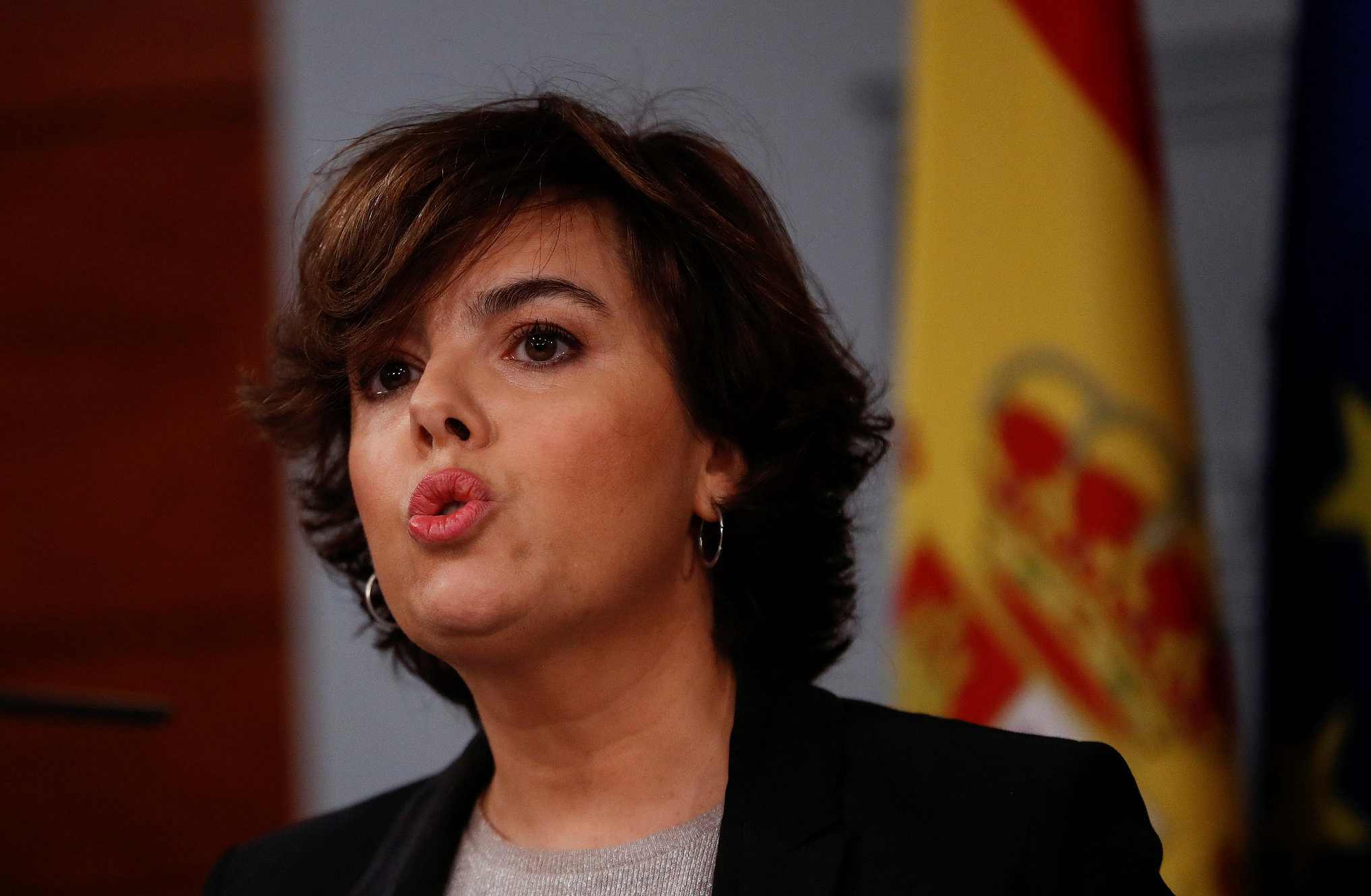 October 16, 2017: Spain's Deputy PM Soraya Saenz de Santamaria speaks during a news conference at the Moncloa Palace in Madrid, Spain. /VCG Photo