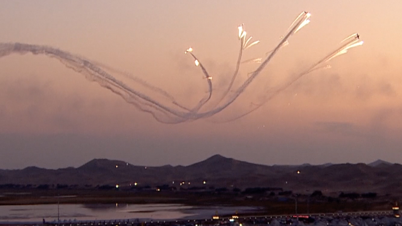 The finesse and fireworks of aerobatic teams graced the darkening sky in north China's Inner Mongolia Autonomous Region. The show was a part of the ongoing 2018 Alxa Aviation Festival, which attracted competitors from around the world.